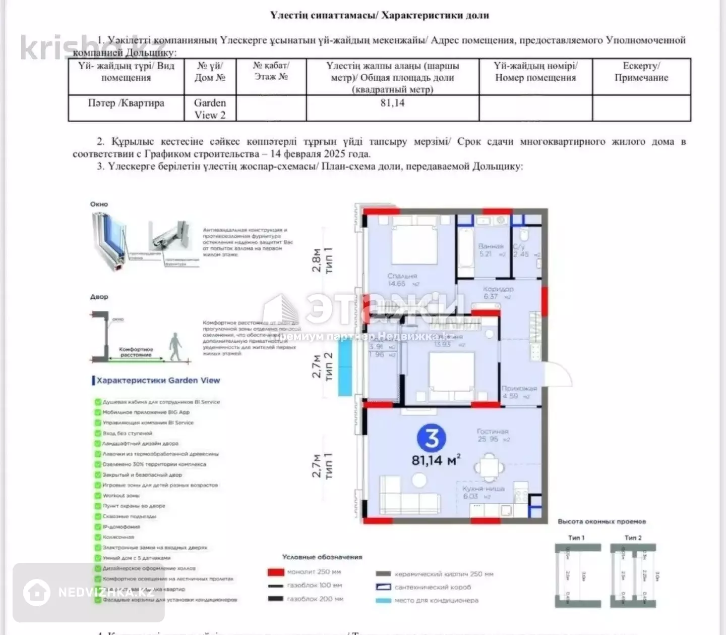 Кухня-студия. Продаётся стильная квартира в ЖК Garden View 2, Астана Жилой комплекс бизнес+ класса расположен в одном из самых престижных районов столицы — рядом с Ботаническим садом . Это идеальное место для тех, кто ценит комфорт, безопасность и современный уровень жизни. ✨ Преимущества ЖК Garden View 2: • Элегантный входной холл в стиле премиум, создающий ощущение статуса с первых секунд; • Полная система видеонаблюдения по всему периметру и в подъездах; • Продуманная архитектура, качественные материалы и современные инженерные решения; • Близость к главным деловым и культурным центрам города. Выгодное время для покупки! Цены на квартиры в комплексе могут вырасти после Нового года на 16%, поэтому сейчас — лучшее время, чтобы инвестировать в комфорт и надёжность. Зал кухня 32 кв м Кладовка в подарок Звоните уже сегодня, чтобы узнать подробности и записаться на просмотр! Garden View 2 — дом, в котором хочется жить Доп. описание: санузел раздельный, пластиковые окна, в доме есть: детская площадка, открытый двор, подземный паркинг, лифт пассажирский, лифт грузовой, современный ремонт, также имеются: телефон, интернет, кабельное телевидение, счетчики холодной и горячей воды, домофон, железная дверь Номер в базе: 11744709. Район: ЕсильскийМестоположение на карте