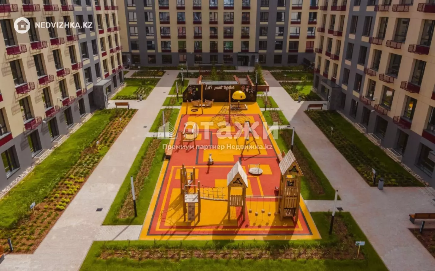Двухкомнатная квартира в улучшенной черновой отделке в ЖК бизнес класса, светлая, 66 кв. м., с безопасным, охраняемым двором, в районе с развитой инфраструктурой, в шаговой доступности 2 школы (101-я государственная и частная Quantum), торгово-развлекательные центры (Хан Шатыр, Грин молл), множество кофеен, магазинов, центров развития, фитнес клубов, всё под рукой.