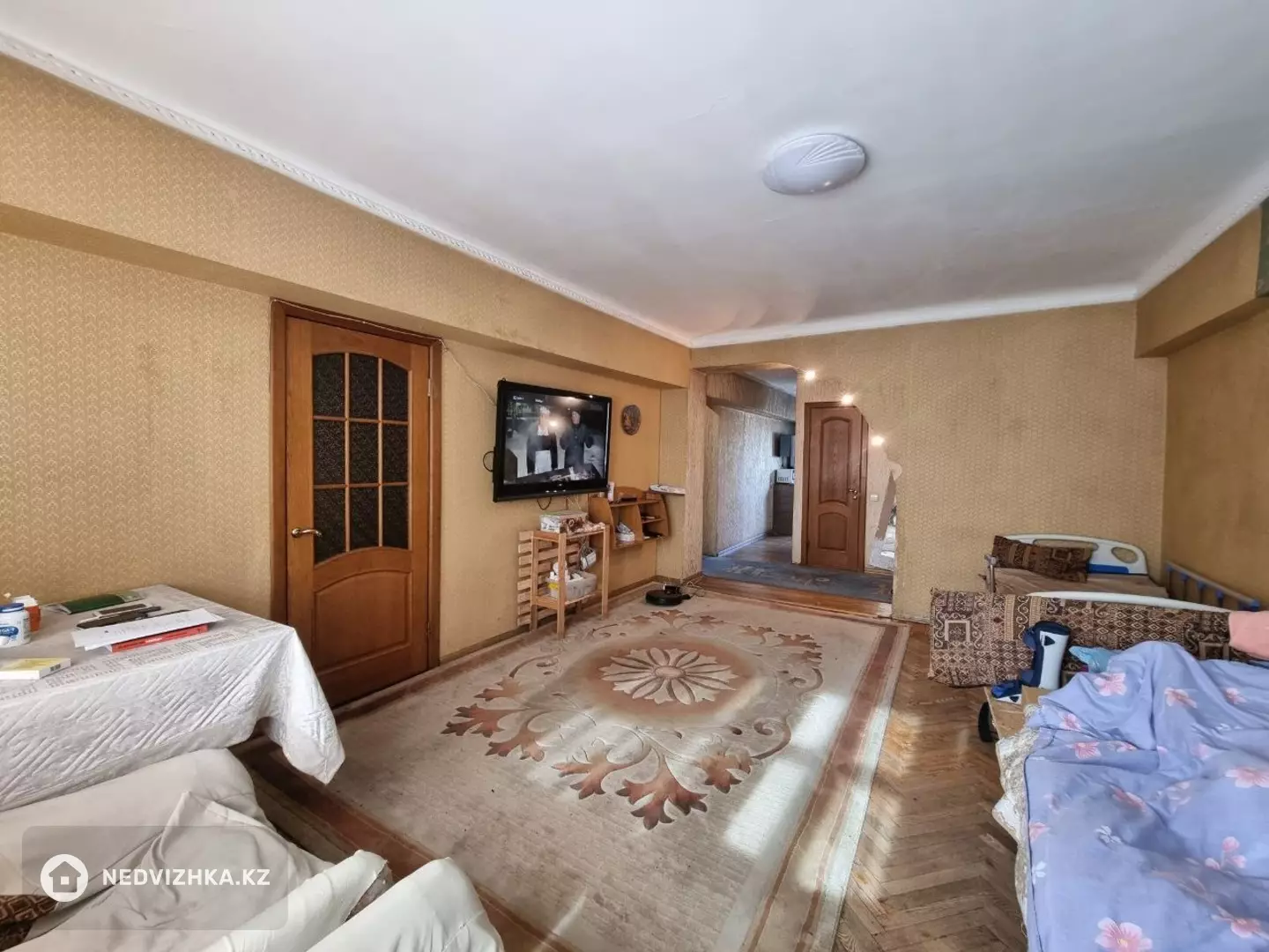 Продам 4-х комнатную квартиру, в кирпичном доме, 1974года постройки. Ведомственный дом, "Военторг", улучшенной особой планировки, общей площадью: 87,1 кв.м., жилой площадью: 63,5 кв.м.; зал большой: 22,6 кв.м., большая спальня: 19,4 кв.м.; 2-детские комнаты: 10,8 кв.м. и 10,7 кв.м.; кухня: 7,8 кв.м.; санузел раздельный; 2 балкона: оба застекленные: 1 балкон с зала: 4 м., 2-ой балкон: длинный, 11 м., с выходом со всех комнат. Потолки: 3 м.; полы: паркет; зал-студия; арка с подсветкой; дизайнерский евроремонт 2008г.; 7/7; угл.; соседи только нижние - шума от соседей нет; хороший вид из окон на три стороны. Развитая инфраструктура, прекрасный район; 2 мин.ходьбы до станции/метро ("Алатау"); рядом автобусные остановки во все районы города. Расположен по пр.Абая/уг.пр.Гагарина. Достаточно косметического ремонта для начала.