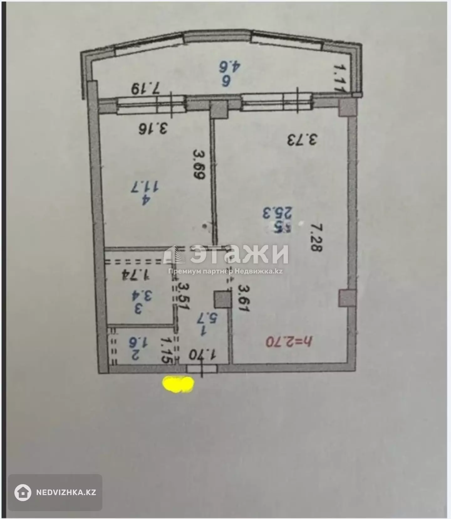 Доп. описание: санузел раздельный, пластиковые окна, в доме есть: закрытый двор, наземный паркинг, лифт пассажирский, лифт грузовой, улучшенная черновая отделка, также имеются: телефон, интернет, кабельное телевидение, счетчики холодной и горячей воды, домофон, железная дверь Номер в базе: 12025739. Район: Алматинский