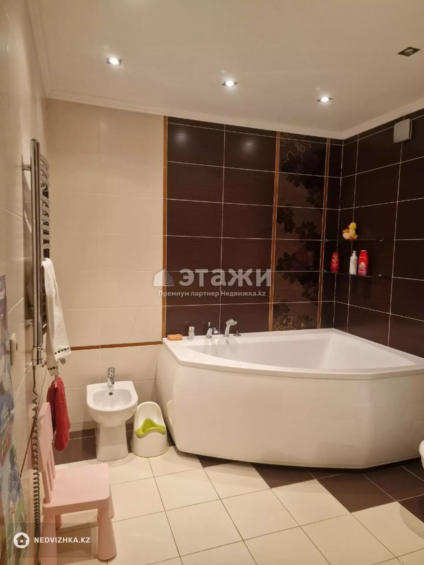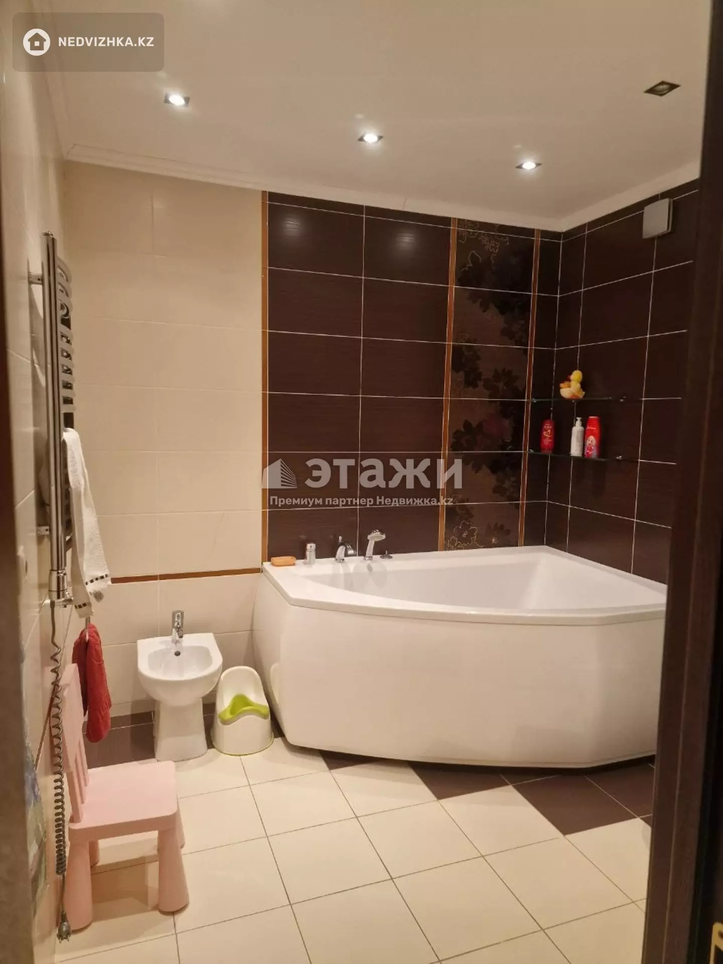 Продам пентхаус 200 кв.м. в кирпичном доме, 4 комнаты, 3 санузла, гардеробная. На 1 этаже гостиная 35 кв.м., кухня-столовая 22 кв.м., санузел, мастер-спальня с санузлом. На 2 этаже 2 спальни и 1 санузел. На лестничной площадке 2 квартиры, 2 лифта. Развитая инфраструктура. Квартира в отличном состоянии. Район золотого квадрата. В шаговой доступности находиться бизнес центр 7 Континент, банки второго уровня, ТД Жаннур, БЦ Алма-Ата. Для шопоголиков в 10 минутах ходьбы рынок Артем, Смолл. Квартира очень светлая, теплая зимой, даже самые сильные морозы Астаны будут вам не страшны из-за хорошего отопления. В квартире ни кто не жил, пол паркет, лестница выполнена из дорогих древесных материалов.