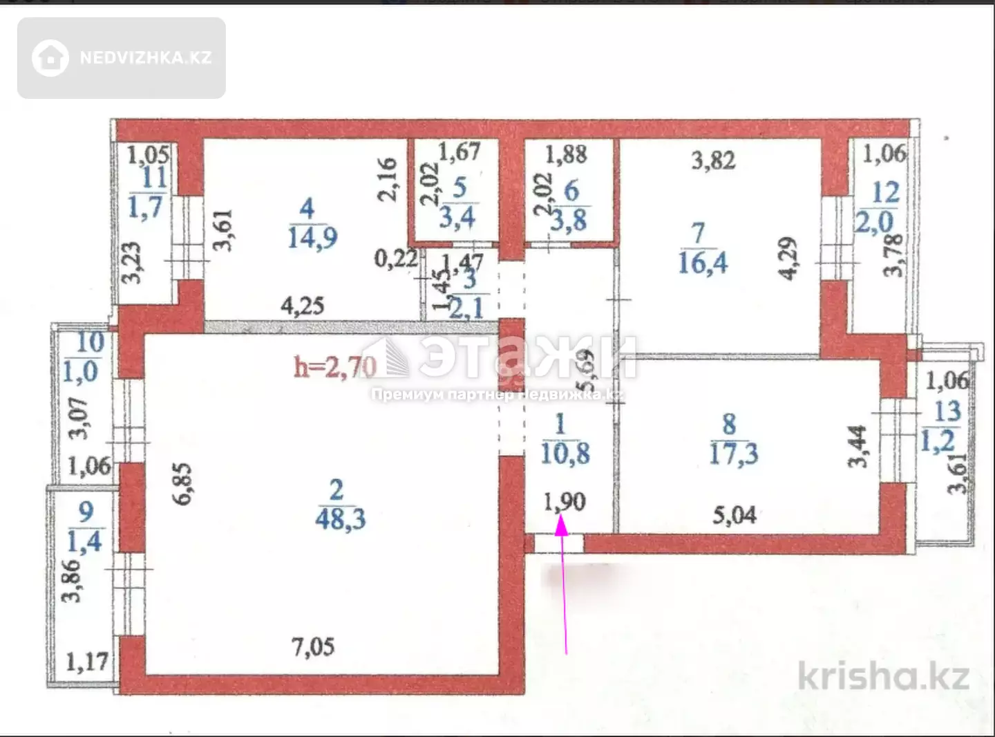 Доп. описание: санузел раздельный, пластиковые окна, в доме есть: детская площадка, закрытый двор, подземный паркинг, лифт пассажирский, ремонт по дизайн-проекту, также имеются: телефон, интернет, кабельное телевидение, счетчики холодной и горячей воды, домофон, железная дверь Номер в базе: 12050006. Район: Есильский
