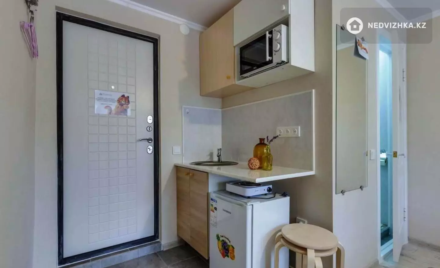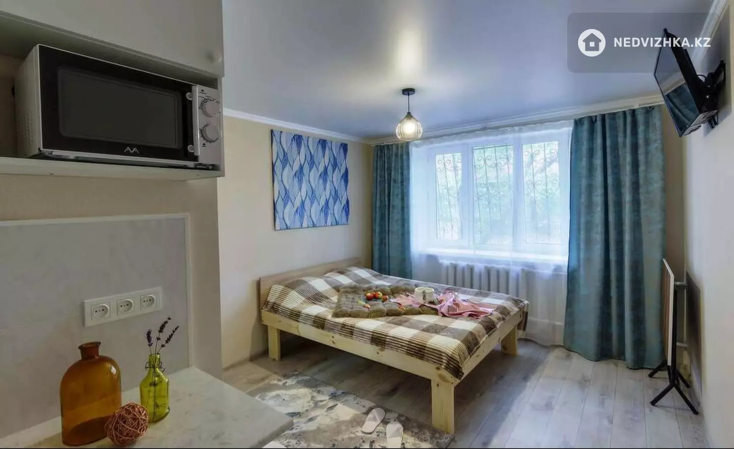 В студии есть всё для комфортного проживания 3 человек: 17 кв.м свежайшее постельное бельё и полотенца двуспальная кровать быстрый Wi-Fi и TV кухонная зона с бытовой техникой и посудой санузел с блестящей сантехникой гладильная доска, утюг, фен, стиральная машина металлическая входная дверь (безопасность) полный пакет командировочных документов — бухгалтер точно примет! Локация: Пешком: Центр перинатологии, онкоцентр, Центр крови, Институт семейной медицины, Центр неврологии, клиника «Достармед», мед.центр «Сана», поликлиника №17. Во дворе: центр репродукции «Persona». 10 мин пешком: Атакент (ВДНХ), Ботанический сад. 5 мин езды: MEGA Center, Парк Президента, река Большая Алматинка, Esentai Mall, VILLA Boutiques Restaurants. Удобный выезд к Медео, Чимбулаку, Кок-Тобе, а также к барахолке и аквапарку «Гавайи». Бесплатная парковка + остановка в 2 минутах. Правила проживания: Заезд после 14:00, выезд до 12:00. Обязательно предъявить оригинал удостоверения личности. Возвратный депозит — 10 000 тенге Курить и шуметь после 22:00 запрещено. Проживание с животными: Доплата 5000 тг/сутки. Размер питомца до 30 см. Не более одного животного. Доп. описание: санузел раздельный, , пластиковые окна, в доме есть: открытый двор, парковка отсутствует, без лифта, современный ремонт, также имеются: телефон, интернет, кабельное телевидение, счетчики холодной и горячей воды, домофон, железная дверь, телевидение, , , , , Номер в базе: 12067016. Район: БостандыкскийМестоположение на карте