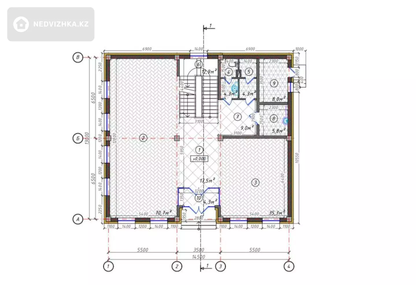 🔹 Зал, кухня, санузлы, прачечная, кладовая и др. — 172,1 м²