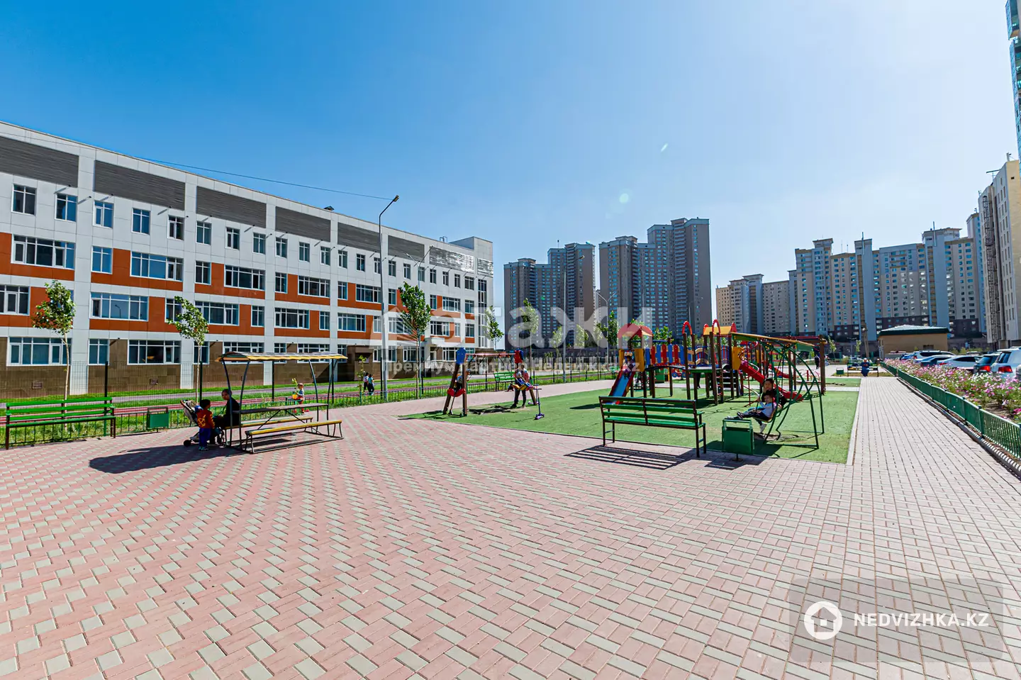 В шаге от дома расположен великолепный Парк имени батыра Бауыржан Момышұлы,триатлон парк для пробежек,под мостом Арқар находятся всем известные спортивные площадки, Международная школа Quantum Riviera, Школа-лицей № 92 прямо во дворе комплекса, Средняя школа № 102, Банкетный зал Astana Music Hall, АО БанкЦентрКредит,Президентский парк