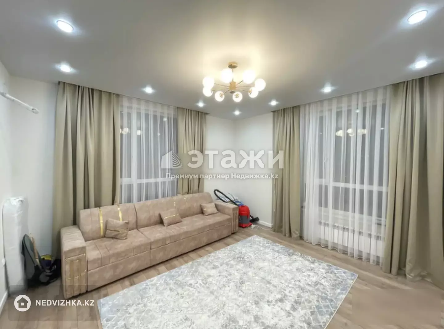 Продаётся просторная и светлая 2-комнатная квартира в жилом комплексе Respublika, дом монолитный, построен в 2020 году. Квартира расположена на 14 этаже из 20, общая площадь — 74 м², кухня — 12 м², потолки 3 метра.