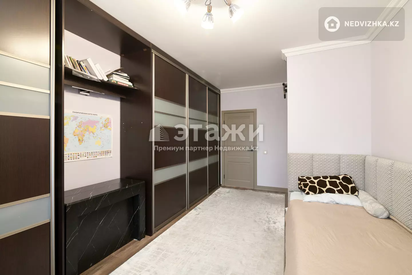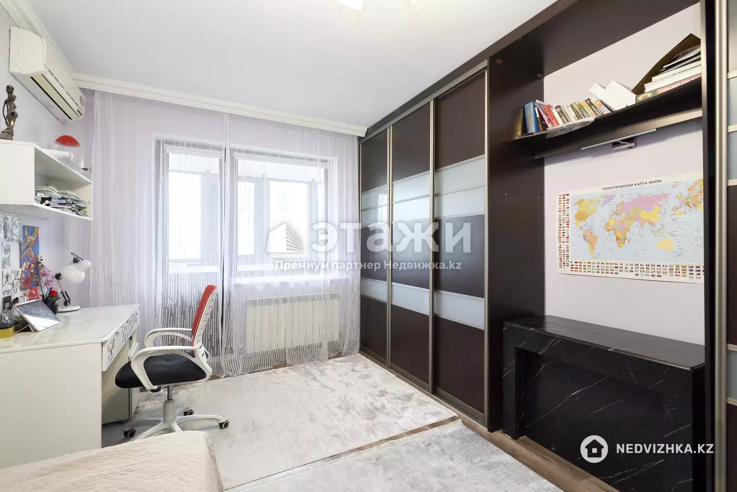 Доп. описание: санузел раздельный, пластиковые окна, в доме есть: открытый двор, наземный паркинг, лифт пассажирский, лифт грузовой, ремонт по дизайн-проекту, также имеются: телефон, интернет, кабельное телевидение, счетчики холодной и горячей воды, домофон, железная дверь Номер в базе: 12092919. Район: Сарыаркинский