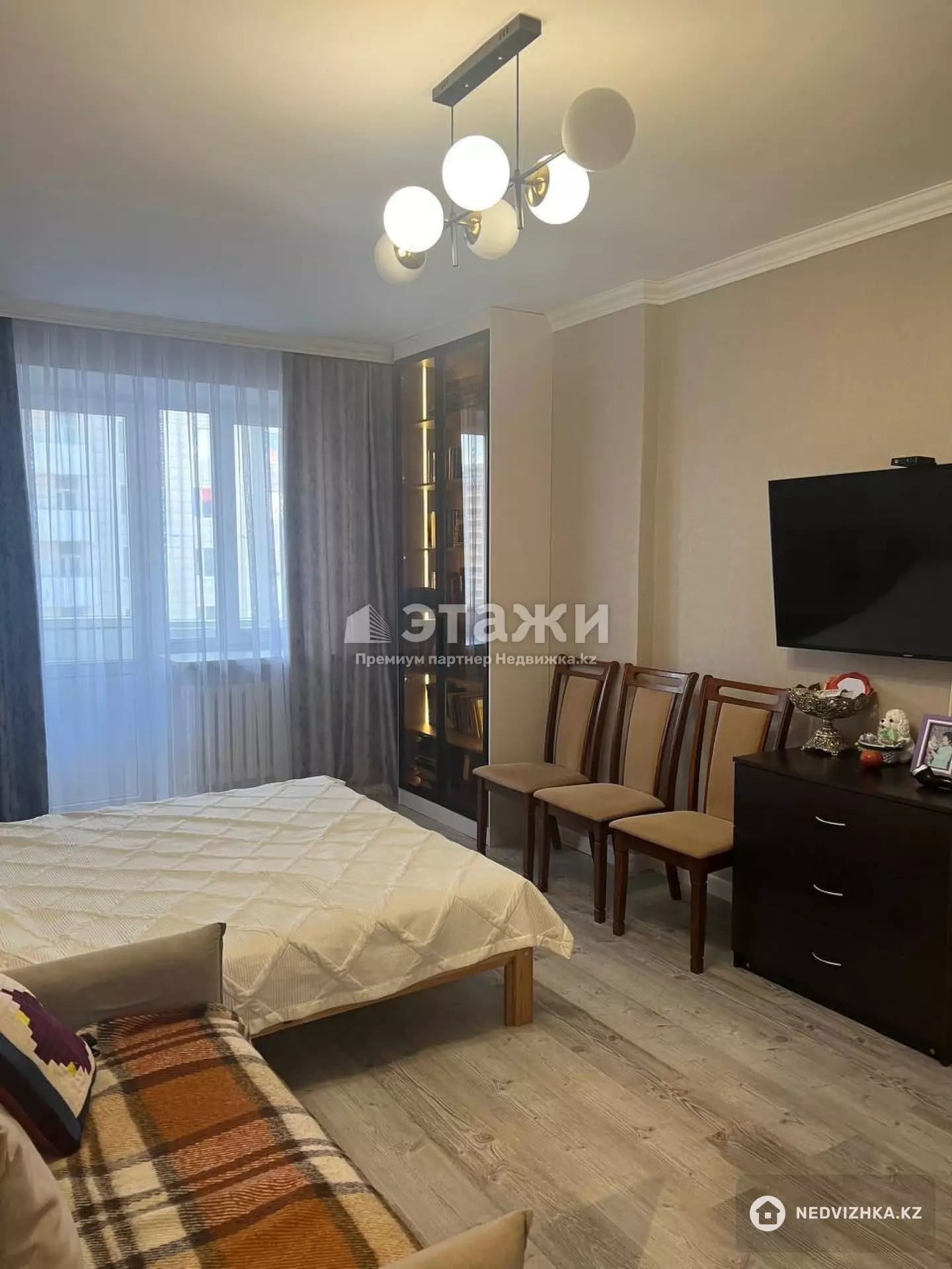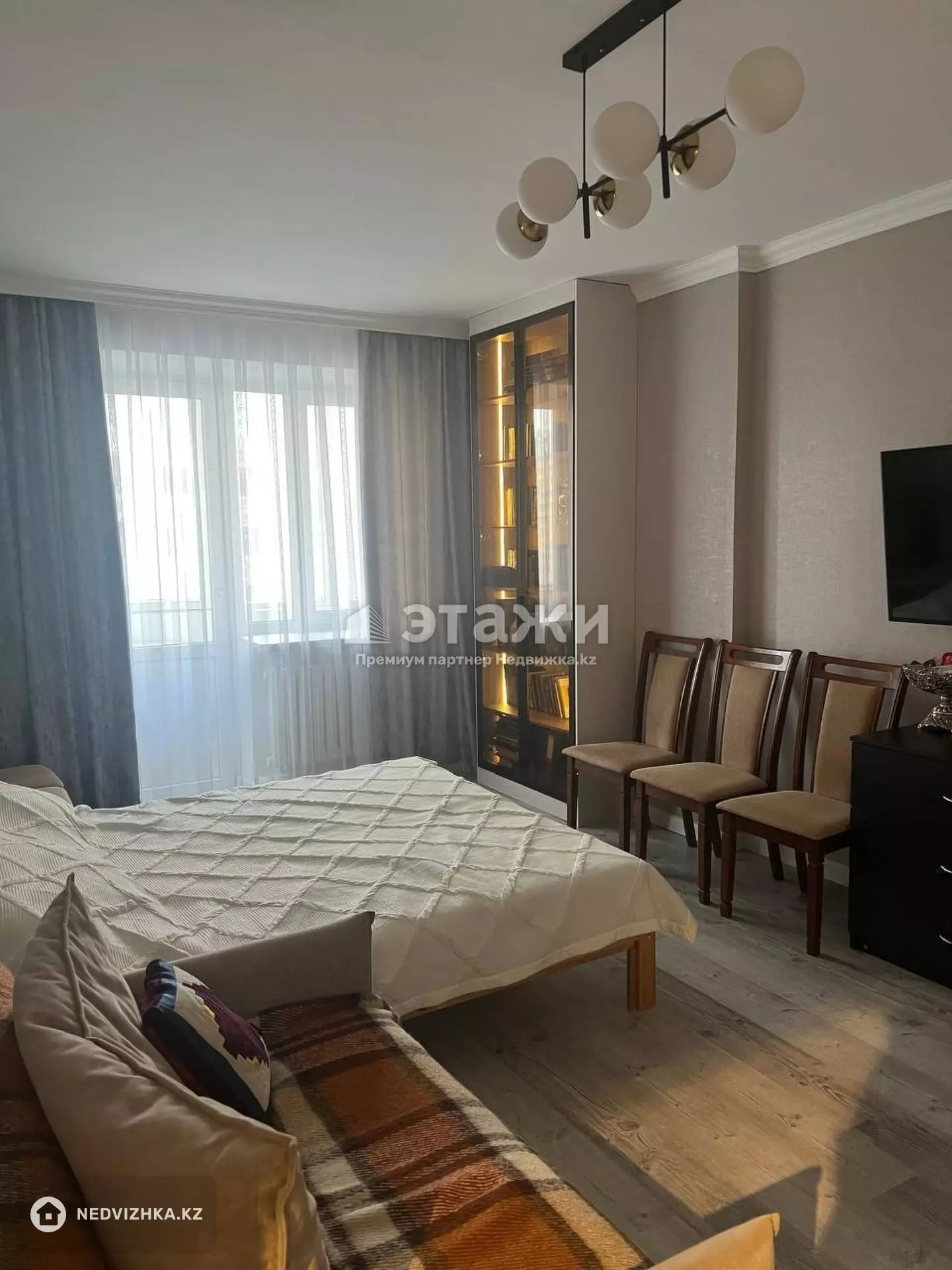 Доп. описание: санузел раздельный, пластиковые окна, в доме есть: детская площадка, открытый двор, парковка отсутствует, лифт пассажирский, лифт грузовой, современный ремонт, также имеются: телефон, интернет, кабельное телевидение, счетчики холодной и горячей воды, домофон, железная дверь Номер в базе: 12095170. Район: Сарыаркинский