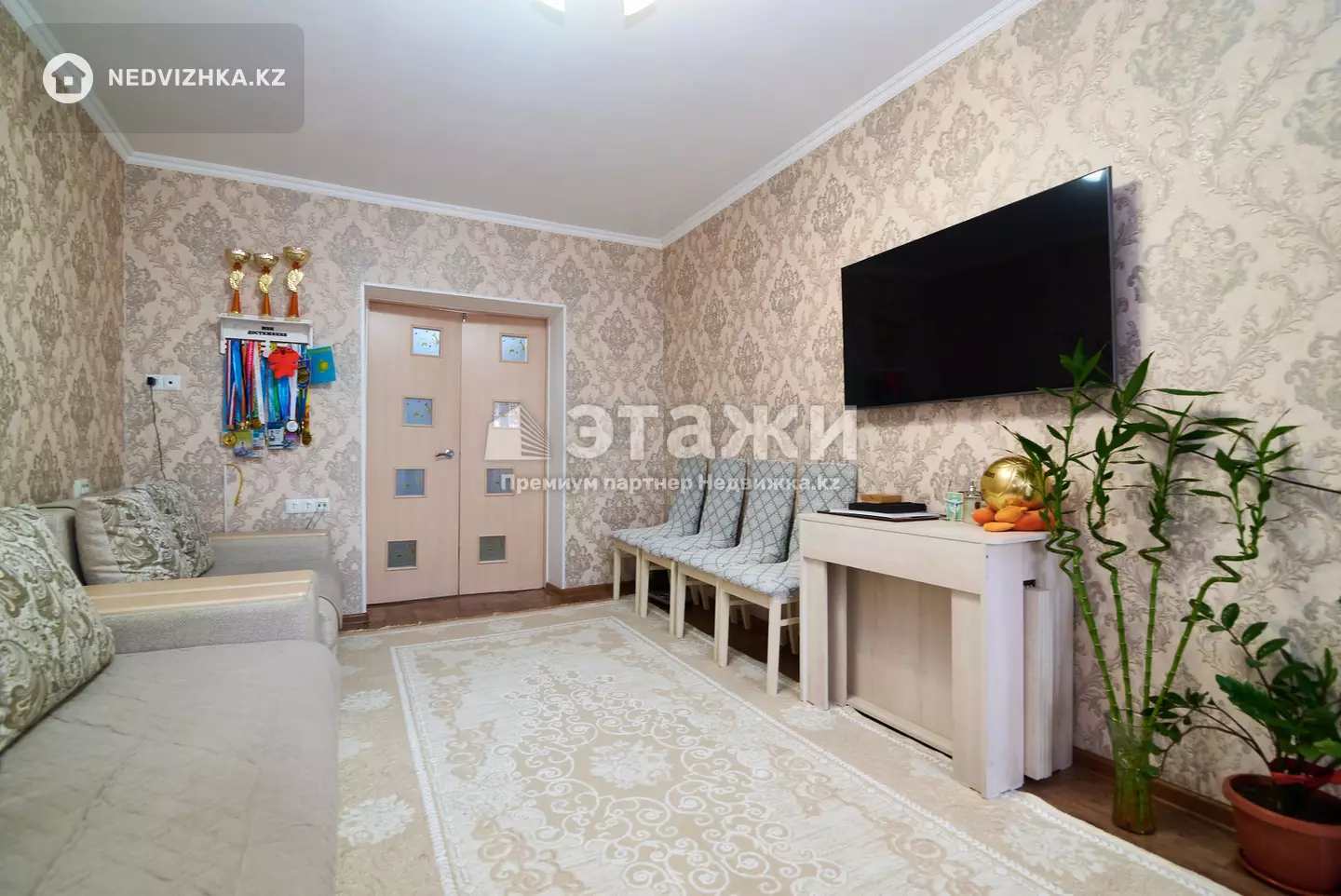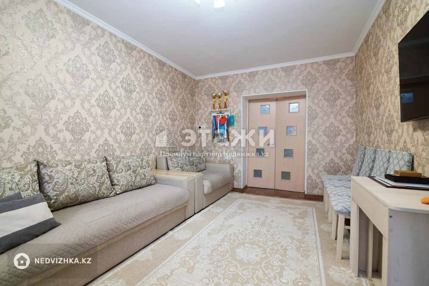 Доп. описание: санузел раздельный, пластиковые окна, в доме есть: детская площадка, открытый двор, наземный паркинг, без лифта, современный ремонт, также имеются: телефон, интернет, кабельное телевидение, счетчики холодной и горячей воды, домофон, железная дверь Номер в базе: 12102733. Район: Байконур