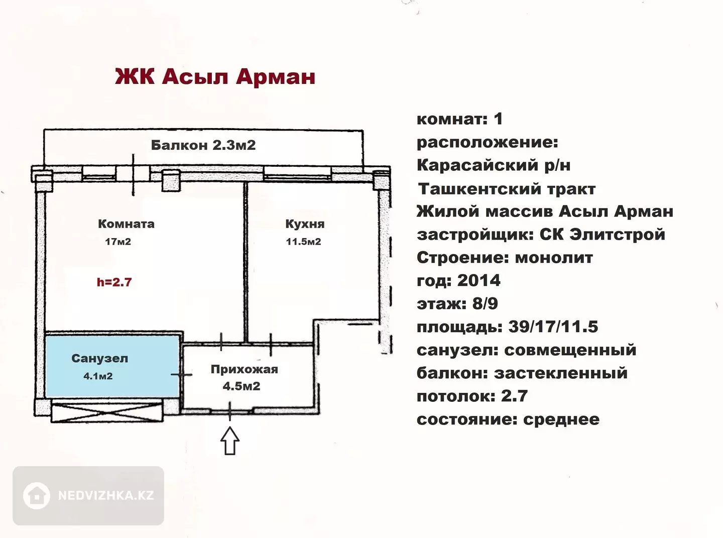 Представляем вам 1 комнатную квартиру в ЖК Асыл Арман. В развитом жилом комплексе города! 💥Район со своей развитой инфраструктурой. Все самое необходимое в шаговой доступности. 💥Квартира просторная, чистая, уютная, светлая. Преимущества: 💥Дом монолитный 💥Развитая инфраструктура дает возможность для вашего комфортного проживания 🚍Удобная транспортная развязка. Недалеко автобусные остановки. В шаговой доступности: 💥Рядом множество частных детских садиков и развивающих центров 🛒В доступности от дома супермаркет Magnum ✅В ЖК имеются магазины, аптеки, салоны красоты и др ✅Недалеко крупный автомобильный рынок Car City Недалеко от ЖК расположены: ✅Крупный ТРЦ апорт Молл ✅Рынок Алтын Орда ✅Крупный строительный супермаркет Леруа Мерлен ✅Все для вашего удобства и комфортного проживания. Очень удобный район в плане покупок и проживания 💥Ипотека проходит 📜Документы в порядке. Юридический чистая квартира. 💥Полностью готова к сделке. 💥Пәтер сатылады. Асыл Арман тұрғын кешені 💥1 бөлмелі 💥Құжаттары бәрі дұрыс. Тексерілген 📞Хабарласыңыз 📜Юридическое сопровождение сделки. Консультации! 📞звоните С уважением Нурлан!Местоположение на карте