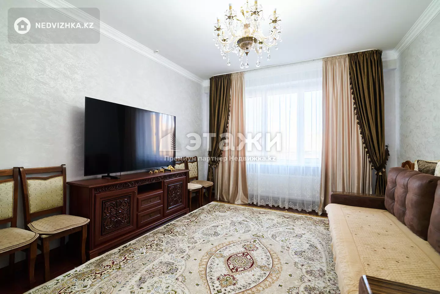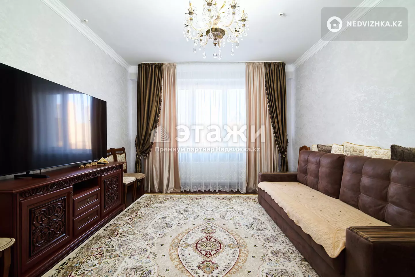 ЖК Гранд-Астана! F2 блок ул. Нажмеденова 10/1, 4эт, 120 кв. метров, потолки 3 метра, 2 сан. узла. Окна выходят на Пирамиду, Ак-орду и на Стелу по ул. Таулесыздык. Рядом школа, 5мин Новый вокзал, через мост по ул. Таулесыздык в сторону п. Тельмана аэропорт Астаны стал в 15 минутах. Дополнительные вопросы по телефону. Помогаем в оформлении ипотек. так же имеется полное сопровождение.