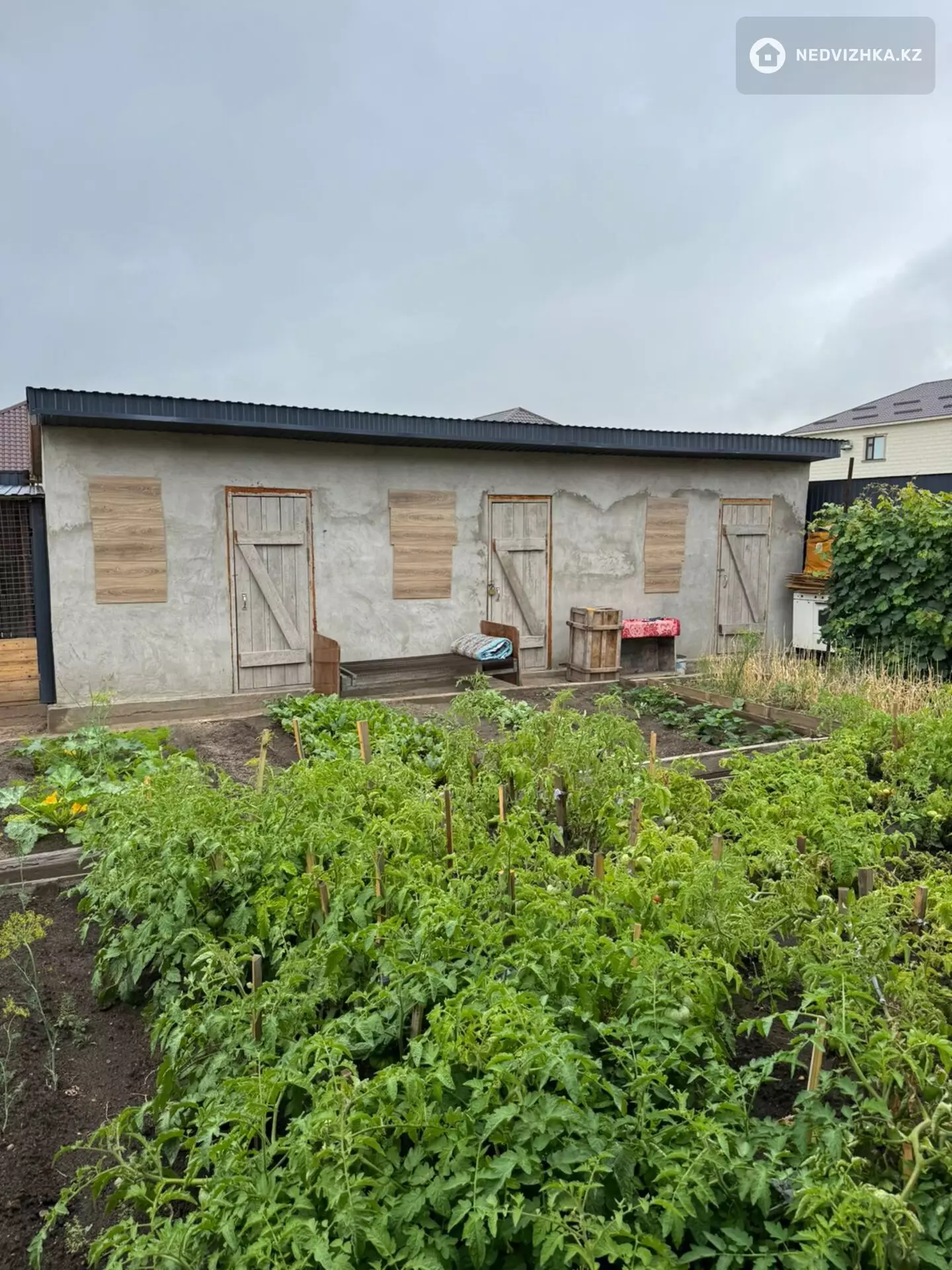 Имеются хозпостройки во дворе,недостроенный гараж на два автомобиля и летний домик.