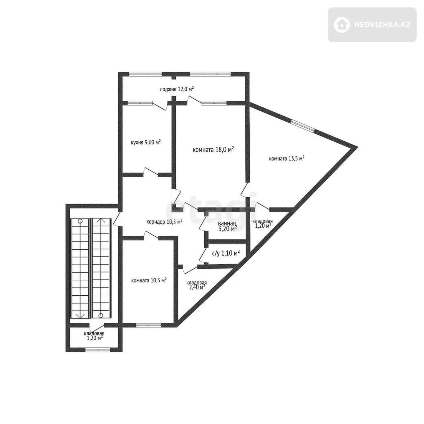 • Комнаты раздельные + 3 подсобные кладовки.