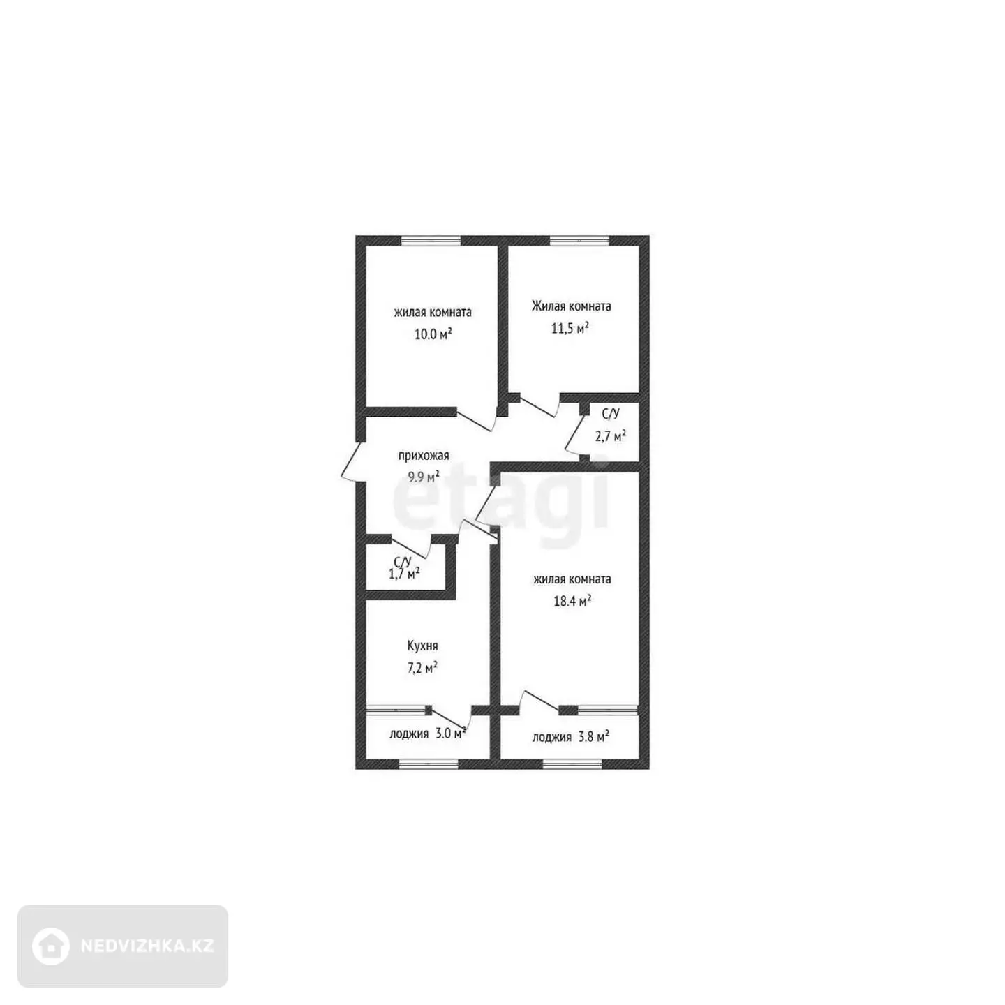 • Площадь: 61,5 м²