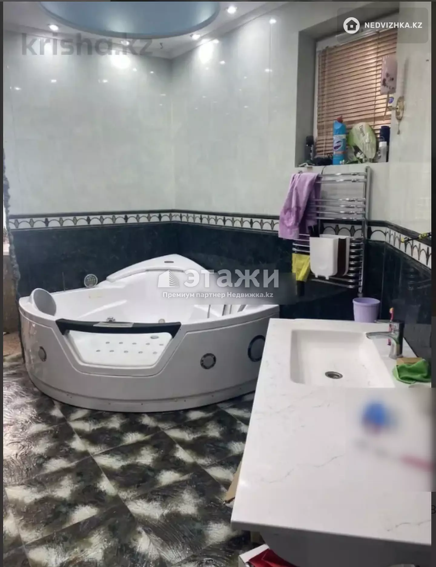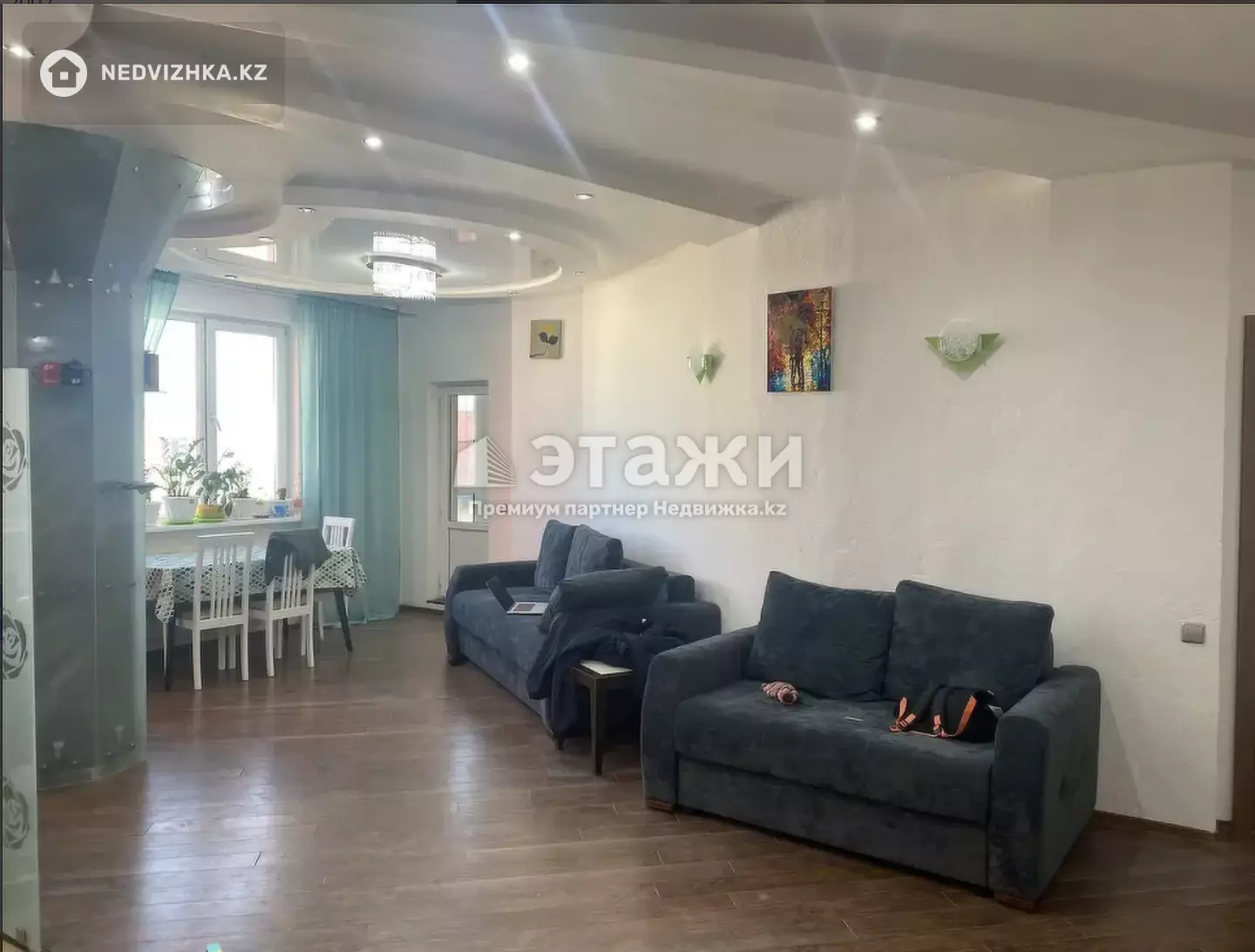 Продается шикарная пятикомнатная квартира со всеми удобствами в районе Байконур по адресу Мамбетова 10. Дом кирпичный 2002 года постройки. Площадь квартиры 200 кв.м. Площадь кухни 35 кв.м. В квартире есть несколько лоджии и балконов, полностью мебелирована, двери металлические, пол ламинат, пластиковые окна, комнаты изолированы, счётчики, тихий двор, кухня-студия. Имеется сауна, электрический камин в зале. Возможен обмен на складскую, производственную недвижимость в городе Астана. Инфраструктура развитая, все находится рядом.