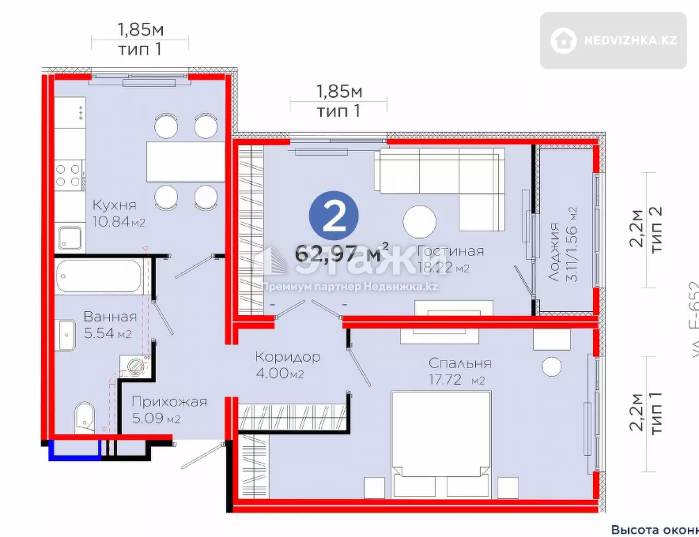 Доп. описание: санузел раздельный, пластиковые окна, в доме есть: детская площадка, закрытый двор, наземный паркинг, лифт пассажирский, косметический ремонт, также имеются: телефон, интернет, кабельное телевидение, счетчики холодной и горячей воды, домофон, железная дверь Номер в базе: 12120916. Район: Есильский