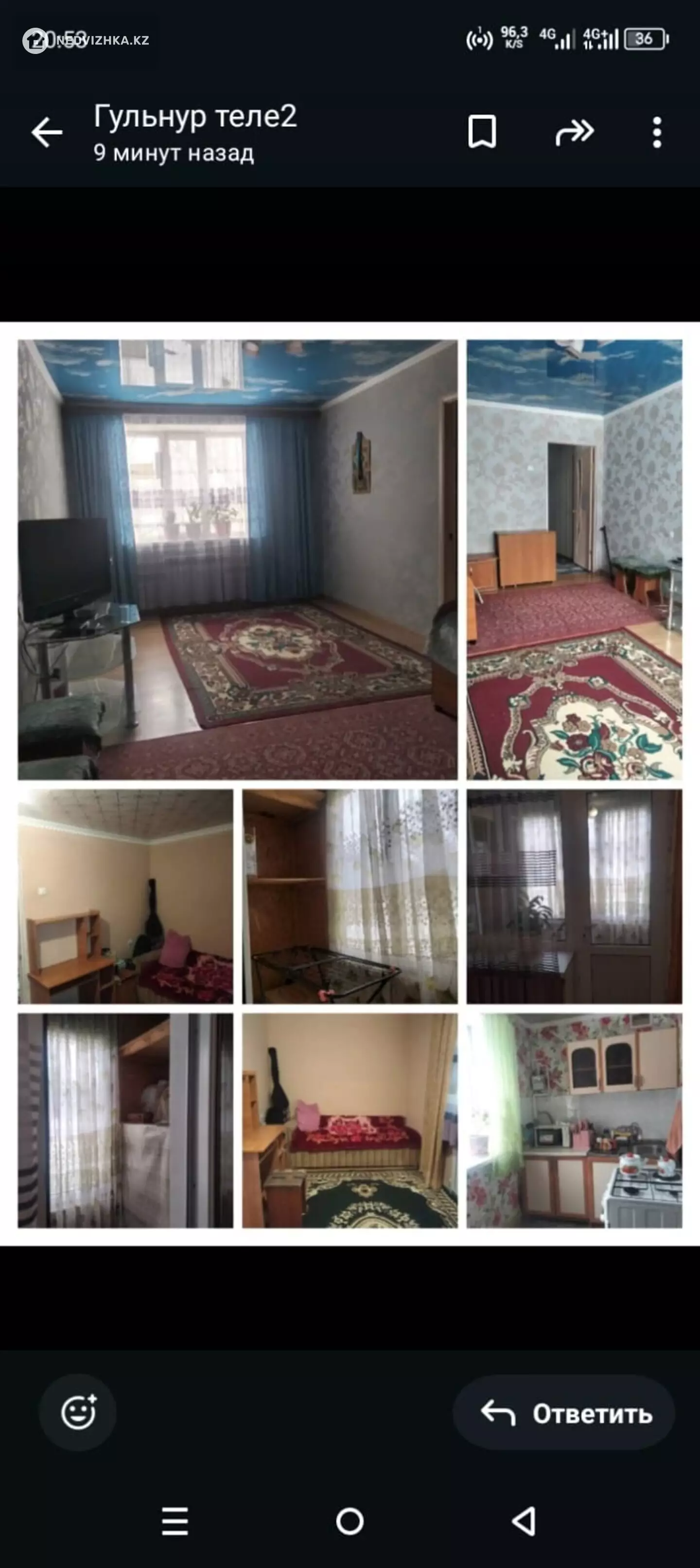 Квартира на 2этаже ,50квметр,сан узел есть ,2комнатная ,евроремонт .Квартира находится в центре 87071778945Гулнур