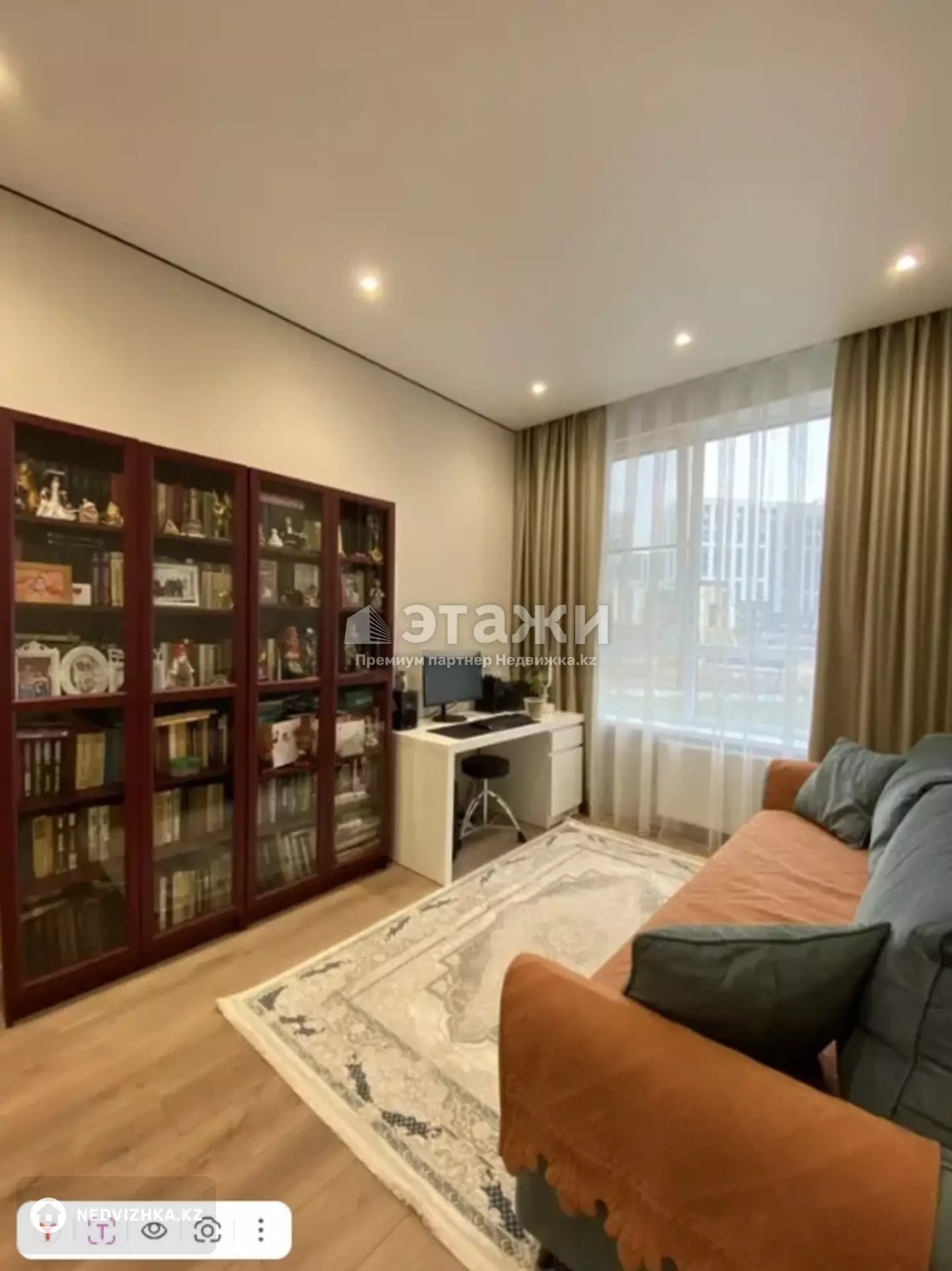 Доп. описание: санузел раздельный, пластиковые окна, в доме есть: детская площадка, закрытый двор, наземный паркинг, лифт пассажирский, лифт грузовой, современный ремонт, также имеются: телефон, интернет, кабельное телевидение, счетчики холодной и горячей воды, домофон, железная дверь Номер в базе: 12121963. Район: Есильский