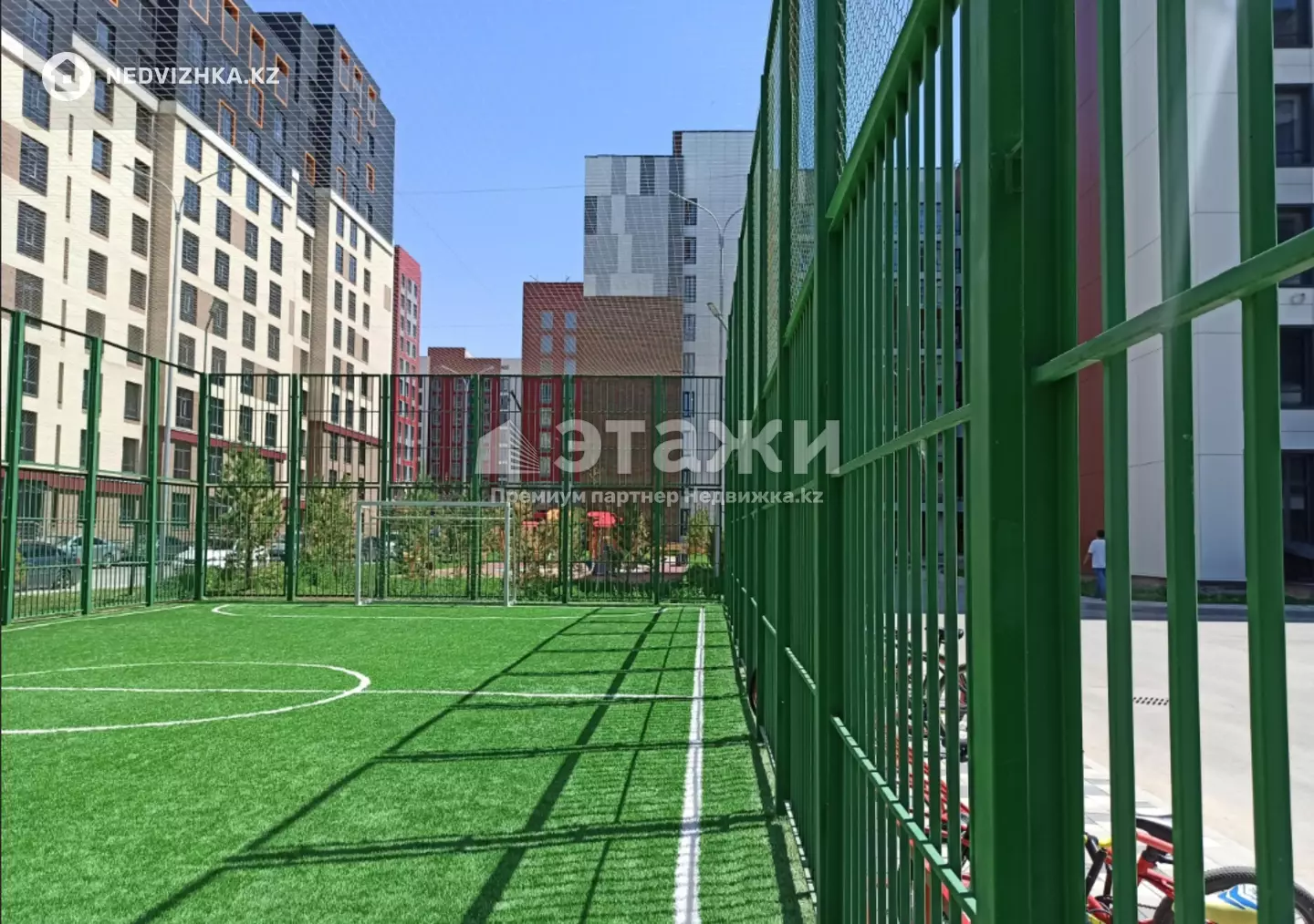 Тихий и ухоженный двор с детскими площадками и футбольным полем — идеальное место для семей с детьми.