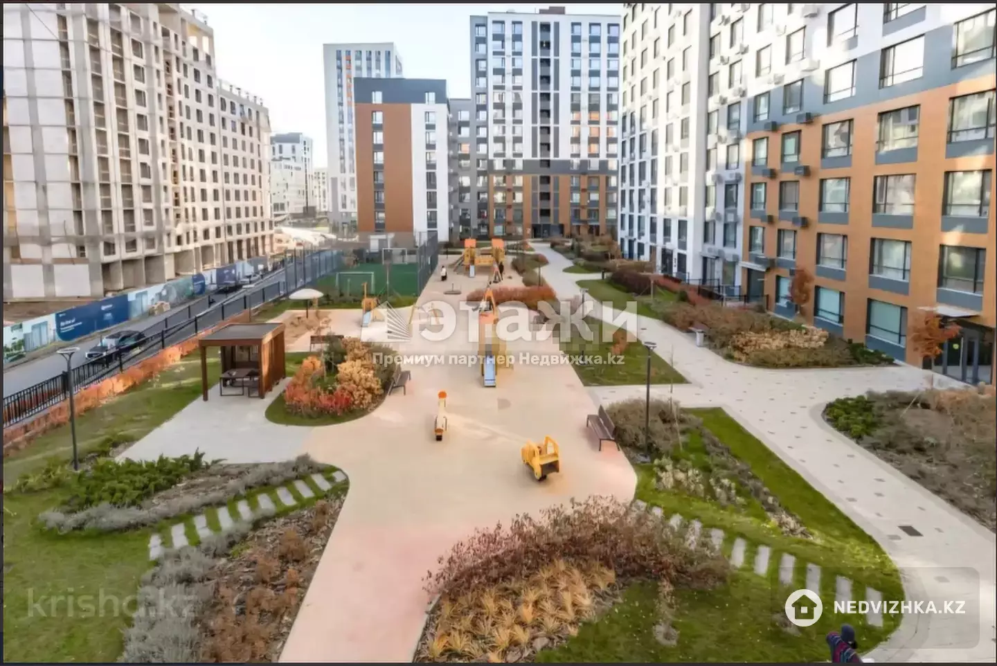 Дом расположен в районе с развитой городской средой: рядом школы, поликлиника, супермаркеты, остановки, а также ТРЦ Хан Шатыр — всё в шаговой доступности.