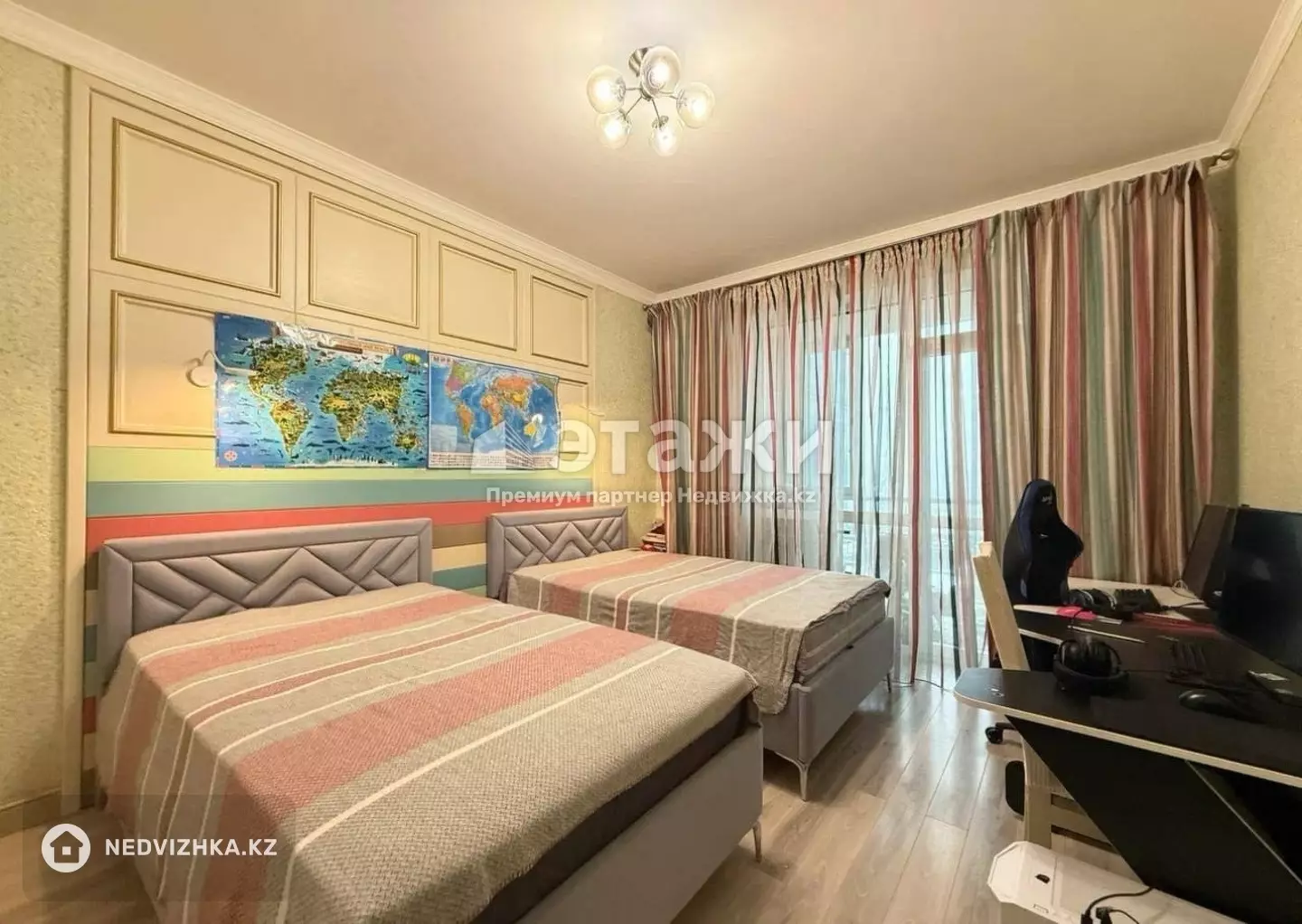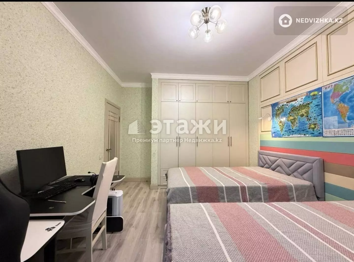 Доп. описание: санузел раздельный, пластиковые окна, в доме есть: закрытый двор, видеонаблюдение, наземный паркинг, подземный паркинг, гостевой паркинг, лифт пассажирский, лифт грузовой, , косметический ремонт, также имеются: телефон, интернет, кабельное телевидение, счетчики холодной и горячей воды, домофон, железная дверь, консьерж, Номер в базе: 12131153. Район: Есильский