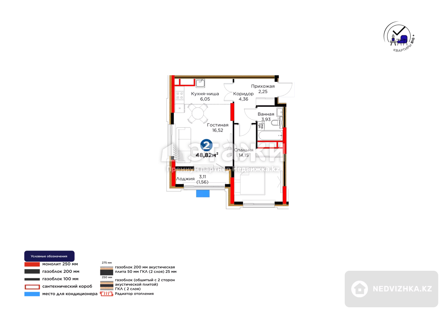 Планировка: полноценная 2-комнатная