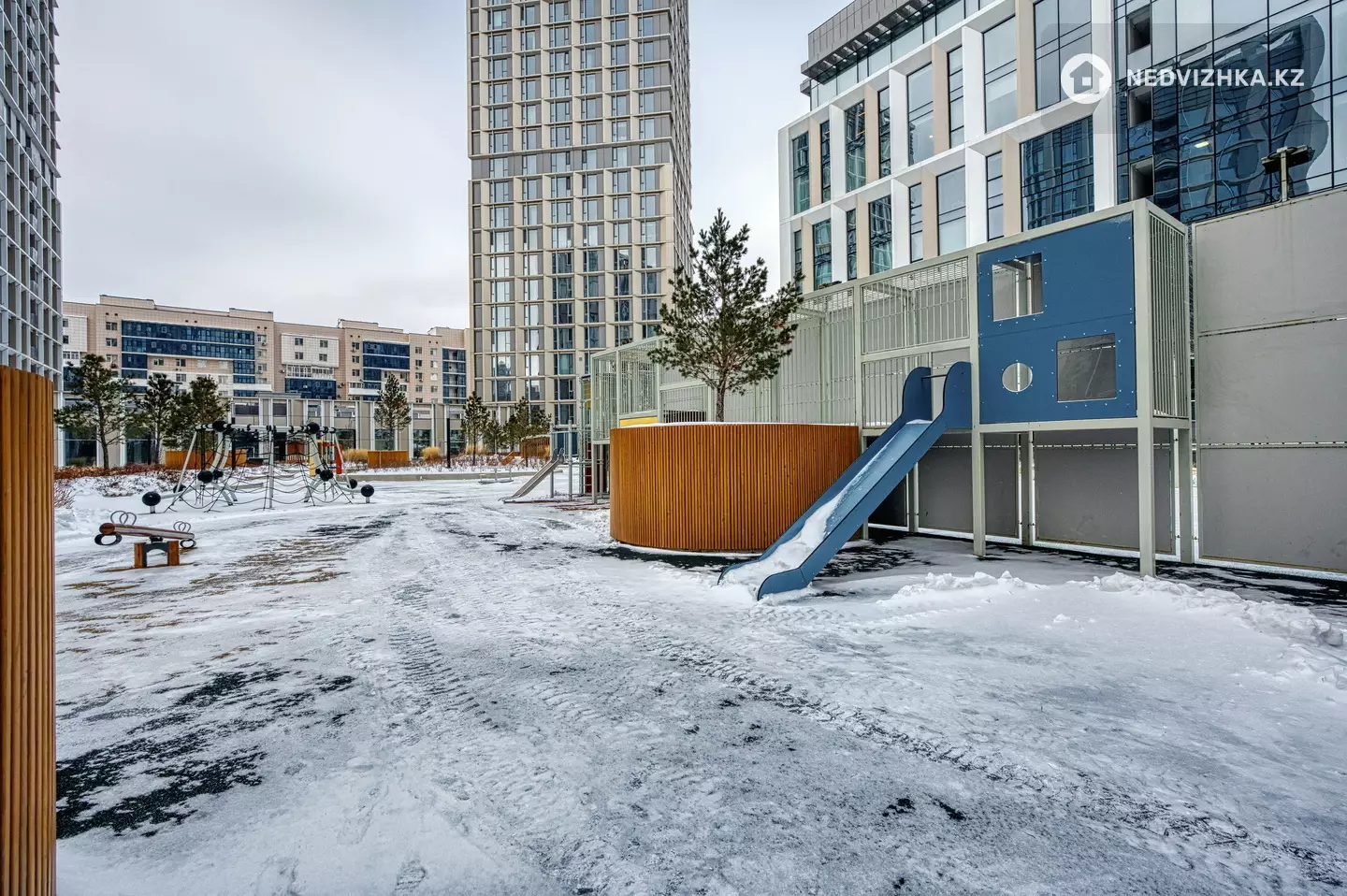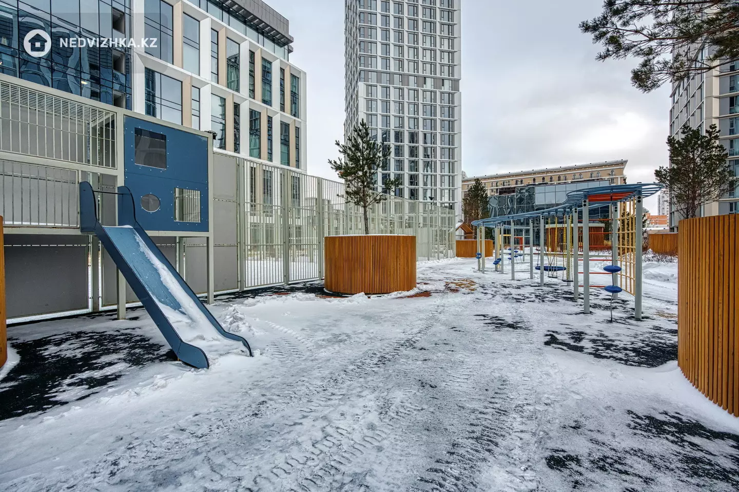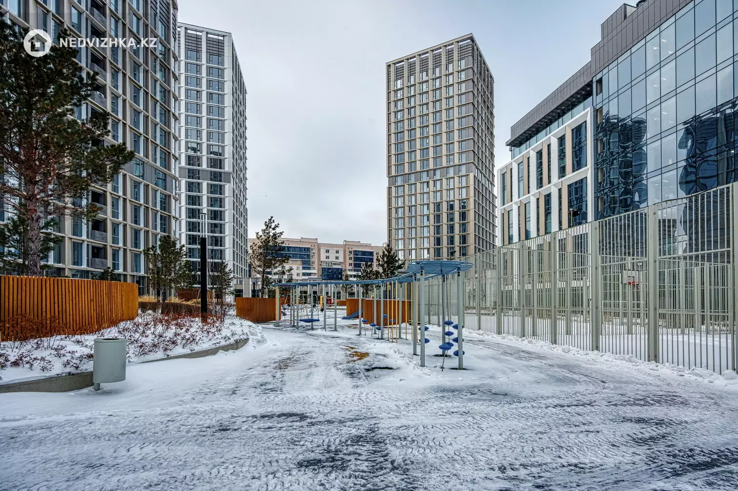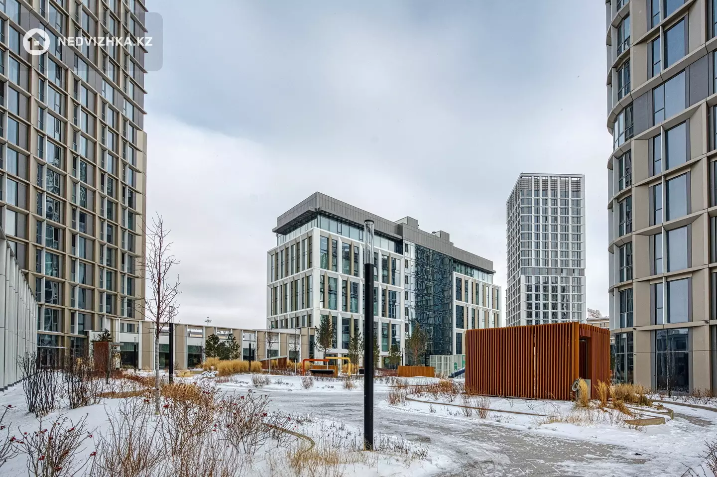 В шаговой доступности — Байтерек, МИД РК, парк Жетісу, школа-лицей №66. Район с развитой инфраструктурой: лучшие кафе и рестораны, магазины, ТРЦ Керуен — всё рядом. Локация считается одной из самых безопасных и престижных в городе.