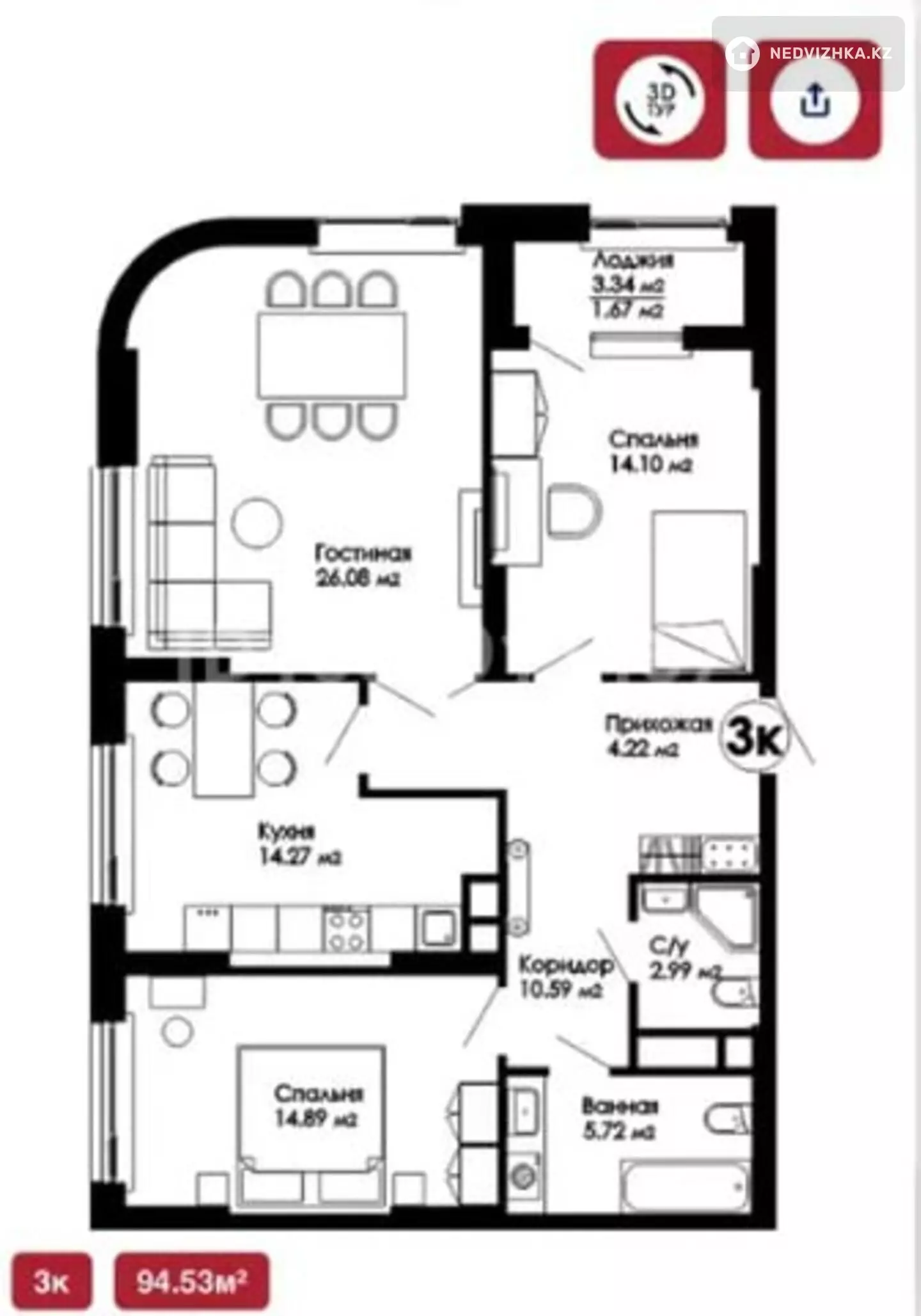🔹Продаётся светлая и просторная 3-комнатная квартира