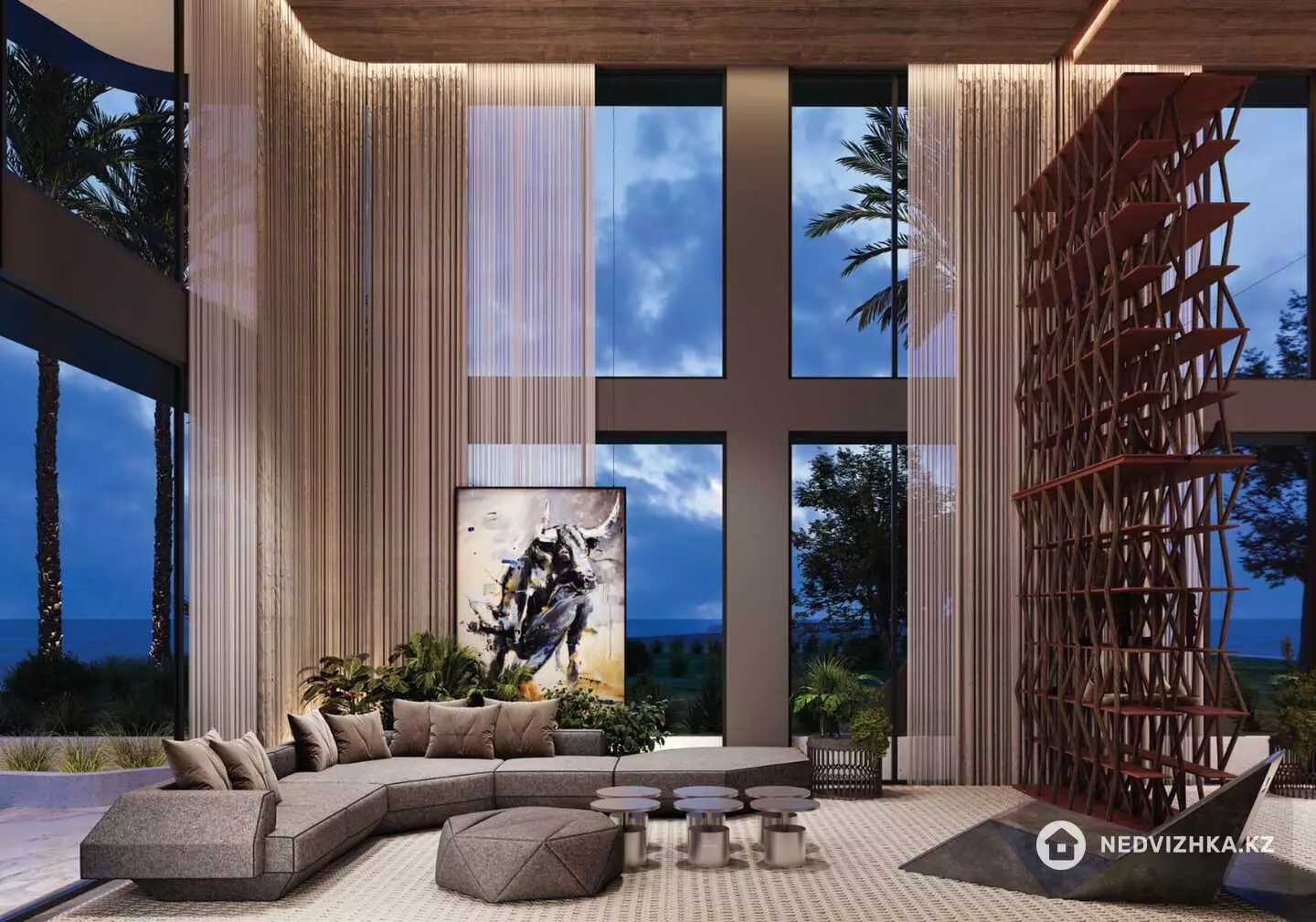 текстурами и изысканными металлическими акцентами. Терраса гармоничных пропорций сохраняет вид и смягчает