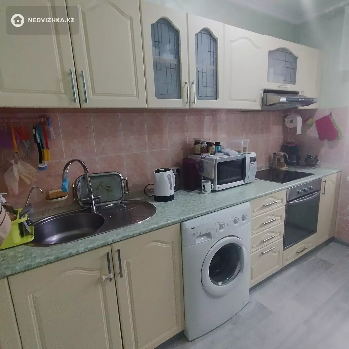 Квартира после ремонта, в квартире остаются: кухонный гарнитур, стиральная машинка, электроплита с духовкой, спальный гарнитур, встроенный шкаф, встроенная прихожая, в коридоре есть небольшая кладовка. Рядом магазин Корзина, школа, садики. Через дорогу Назарбаевская школа, рядом Норма.