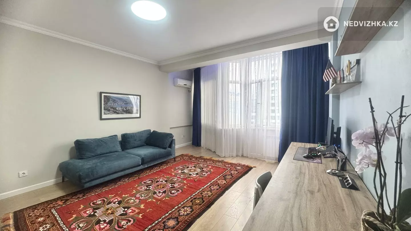 На продажу выставлена просторная трехкомнатная квартира от первого хозяина в центре города! Предлагаем вашему вниманию светлую и уютную квартиру в кирпичном доме 2006 года постройки, расположенную на среднем этаже в одном из самых востребованных районов Алматы — микрорайоне Самал 2. Правильная планировка: отдельная кухня площадью 18 кв. м., большая гостиная 35, 2 кв. м. и две спальни 23, 1 кв. м. и 19, 3 кв. м. В главной спальне — великолепная ванная комната. Квартира с двумя санузлами, что создаёт дополнительный комфорт для всех членов семьи. Окна квартиры выходят на юго-восток, благодаря чему квартира наполнена светом в течение всего дня. В квартире сделан качественный ремонт в 2023 году: выравнивание полов с новой стяжкой, укладка европейского ламината, установка новых межкомнатных дверей (Белоруссия), обновление ванной комнаты и установка нового кухонного гарнитура. Встроенная посудомоечная машина Bosh, духовой шкаф, вытяжка и плита Hansa. Квартира продается с мебелью и бытовой техникой. Три квартиры на лестничной площадке, первый этаж технический — у вас будет минимум соседей и максимальное спокойствие. Квартира не в залоге и находится в отличном состоянии. Локация — идеальный выбор для комфортной жизни ! В шаговой доступности находятся Almaty Theatre, Almaty Museum of Arts, сквер Журналистов, Центральный музей, Новая Площадь, а также крупные торгово-развлекательные центры: Dostyk Plaza, Евразия, Ритц Палас . Образовательные учреждения: Школа-лицей №131, Сад №116, частная школа им. Шокана Уалиханова. Рядом магазины (SMAII, Магнум, Ramstore), а также фитнес-центры и рестораны. Безопасность и экологичность района, а также удобная транспортная развязка делают это место ещё более привлекательным для проживания.Местоположение на карте