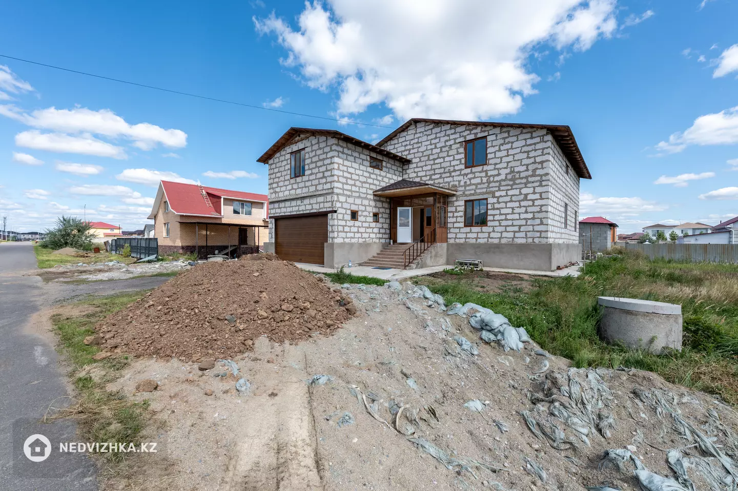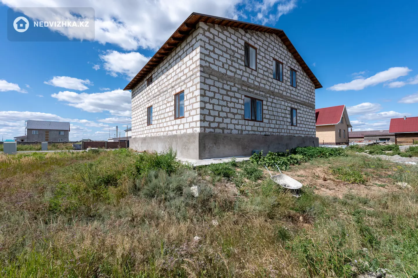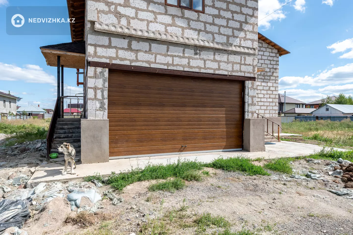 Дом (361, 9кв. метров) построен из газоблока, облицован кирпичом, крыша покрыта металлочерепицей.