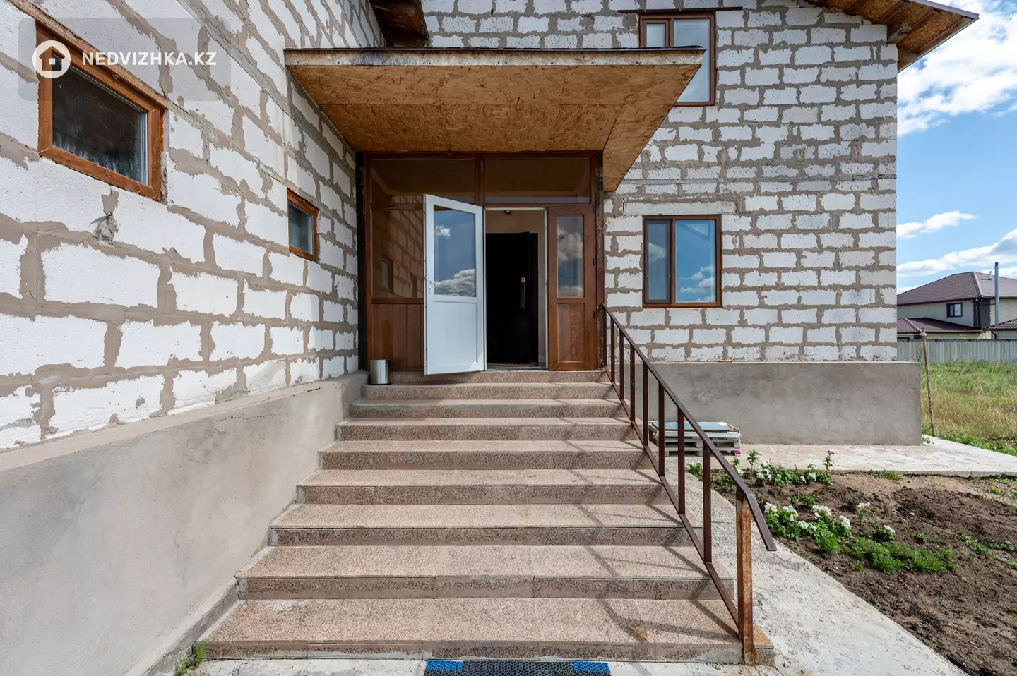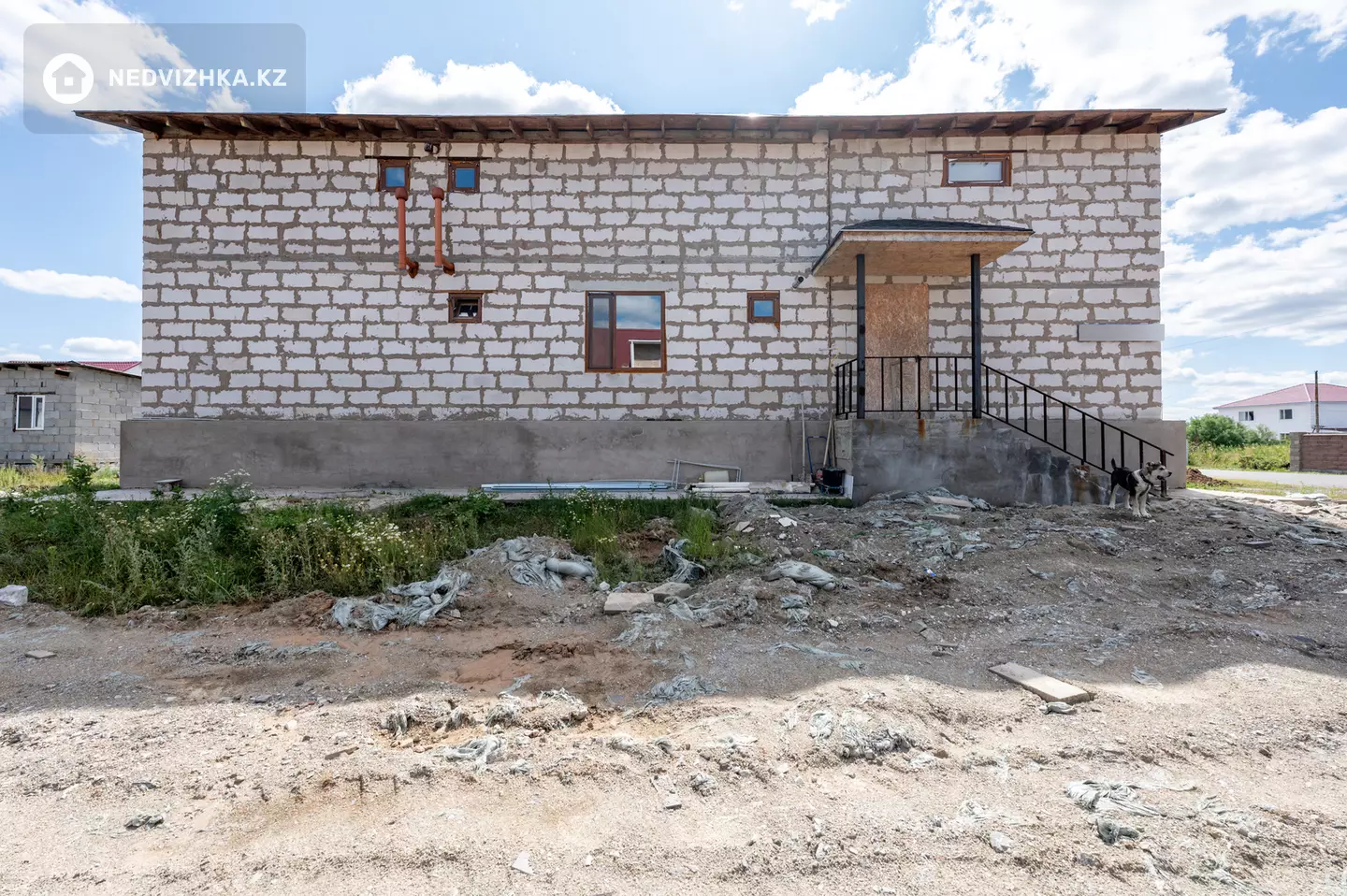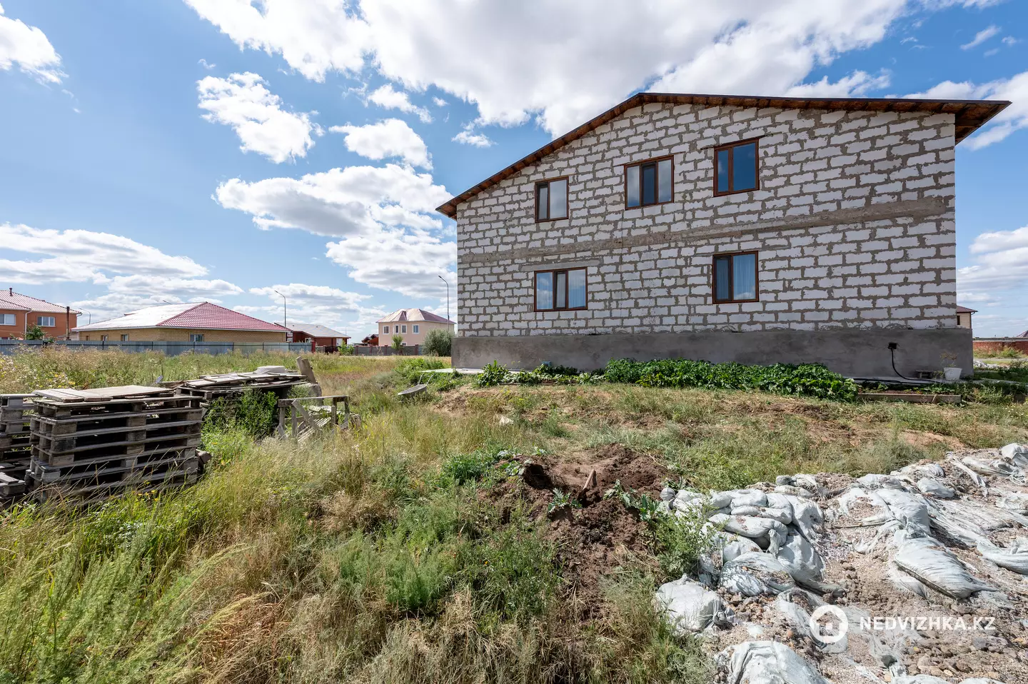 Дом (361, 9кв. метров) построен из газоблока, облицован кирпичом, крыша покрыта металлочерепицей.