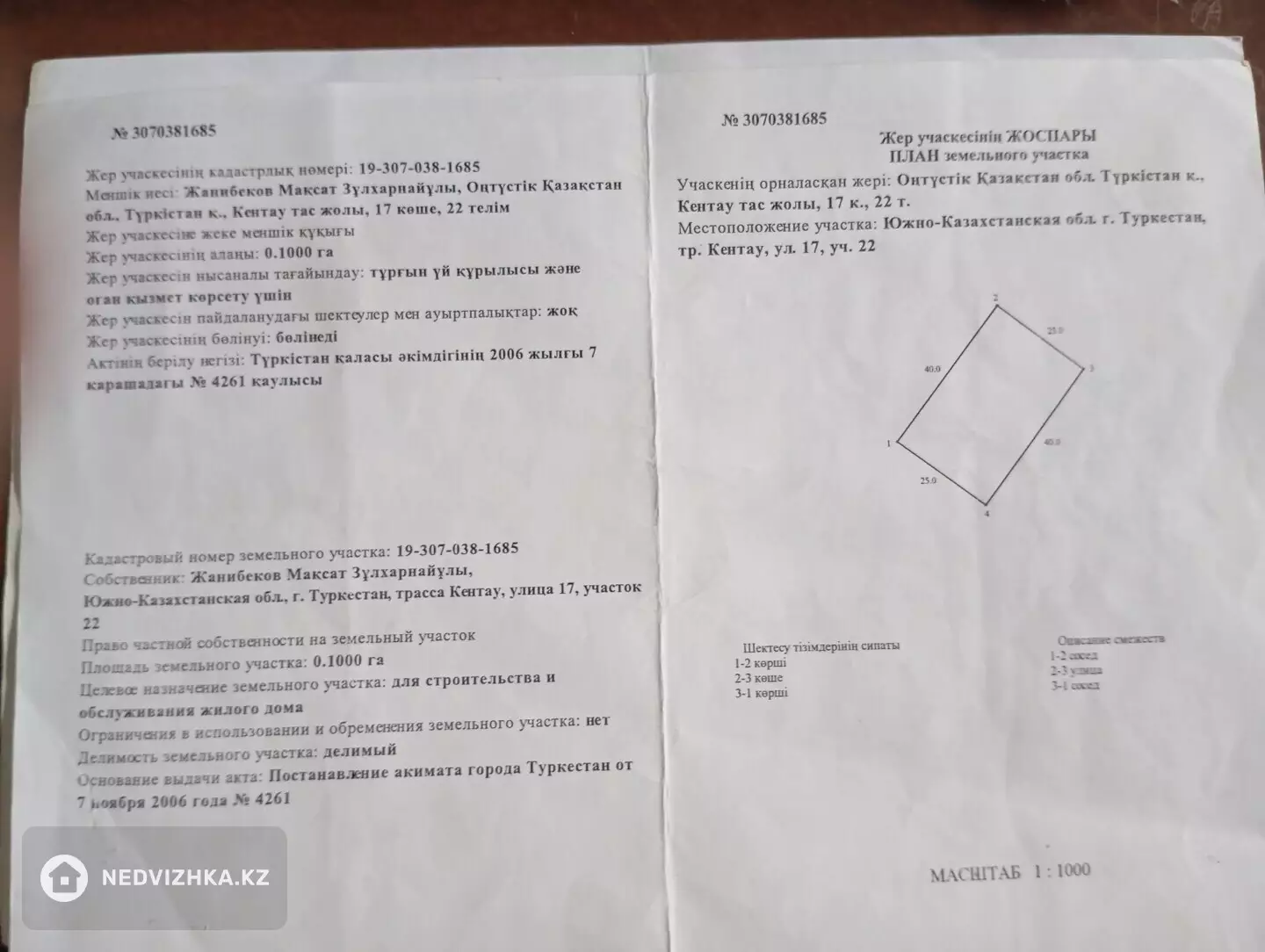 Түркістан, Нұрлы Әлем көшесі 22–учаске 10 сот