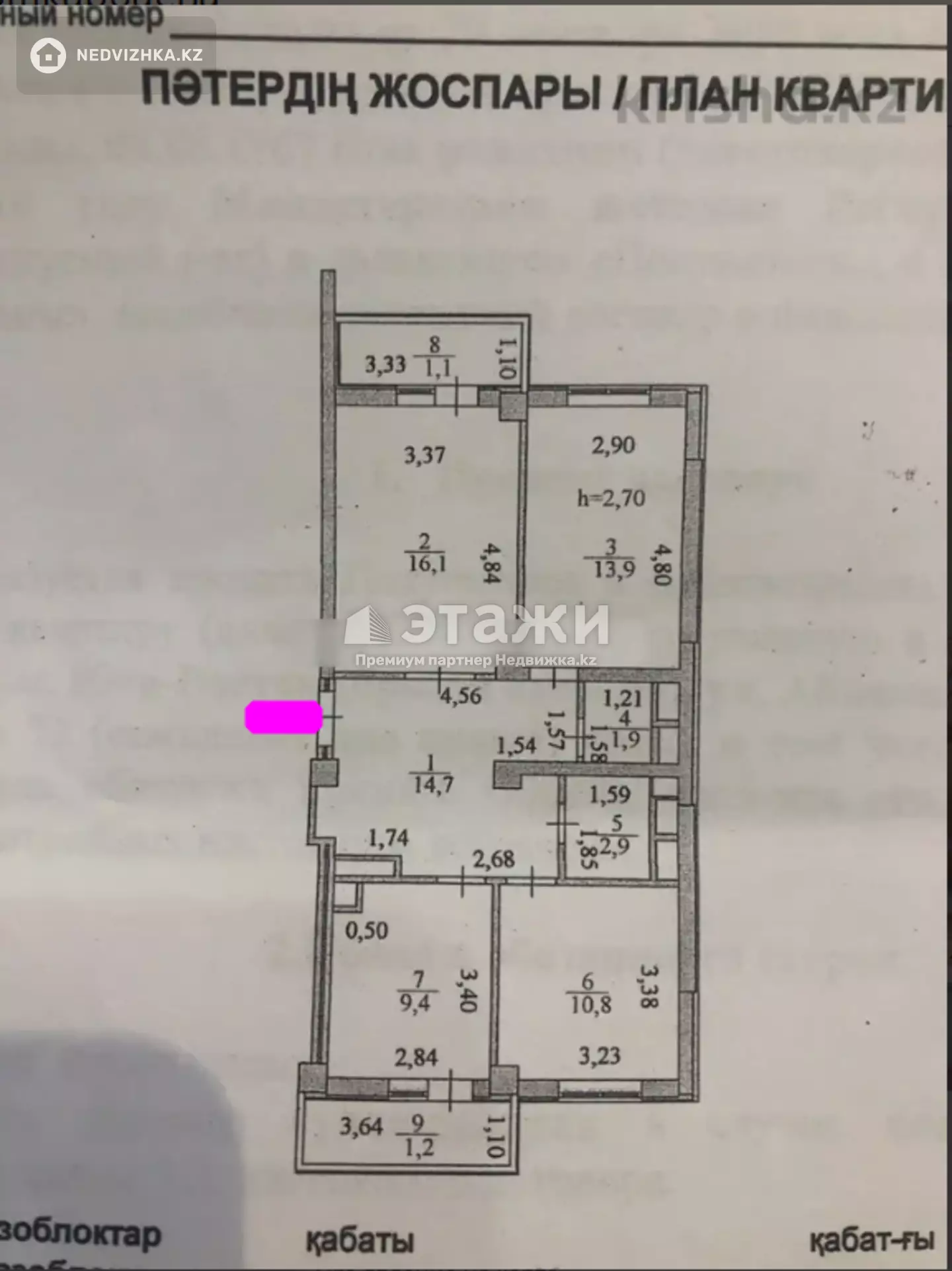 Доп. описание: санузел раздельный, пластиковые окна, в доме есть: детская площадка, открытый двор, наземный паркинг, лифт пассажирский, лифт грузовой, косметический ремонт, также имеются: телефон, интернет, кабельное телевидение, счетчики холодной и горячей воды, домофон, железная дверь Номер в базе: 12147087. Район: Алматинский