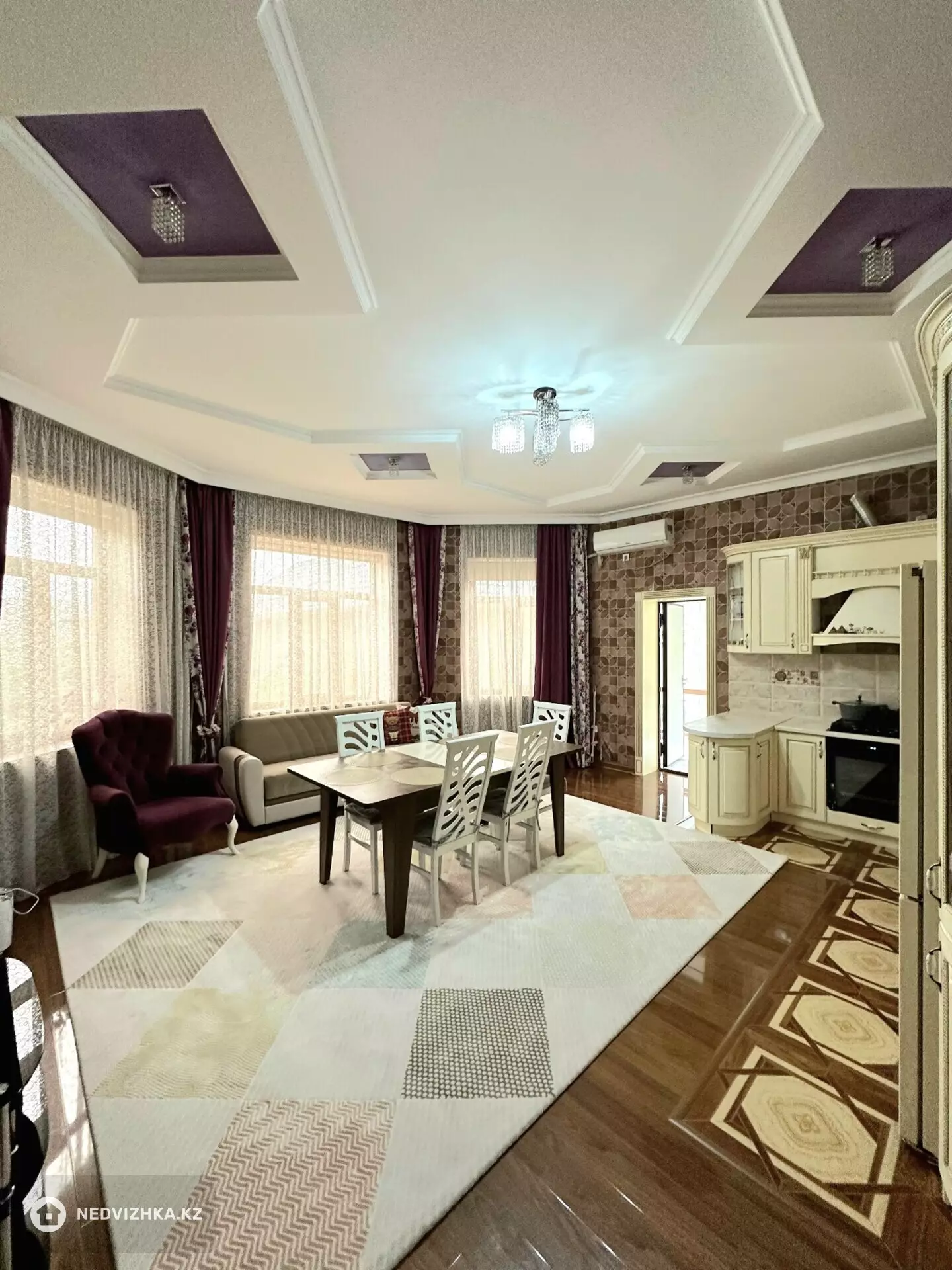 Дорогие друзья! Предлагаем Вашему вниманию - Благоустроенный 2-х этажный дом в микрорайоне "АКЖАЙЫК" по ул.Сырнай булак, состояние отличное - "Евреремонт", полностью с мебелью и бытовой техникой. Общей площадью - 280 кв.м., материал постройки - жженный кирпич, крыша - металлочерепица, окна - пластиковые, полы - ламинат. Состоящий из 7-и комнат, 2016 года постройки. Имеются - летняя кухня, баня, гараж, топчан, беседка, навес для авто. Земельный участок 8 состок, все коммуникации, центральная канализация, огорожен по периметру. Заезд с ул.Толеметова. Тихий спальный район. Не заложен. Торг возможен. С уважением агентство недвижимости " GOLDEN-KAGANAT' - Нурлан Ибадуллаевич, Алмас.