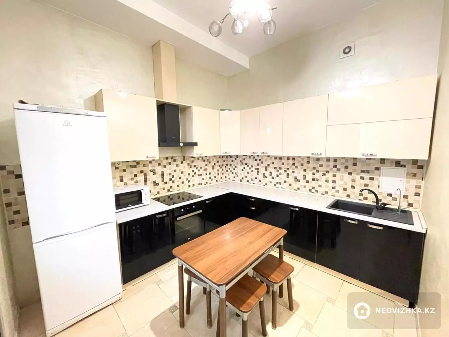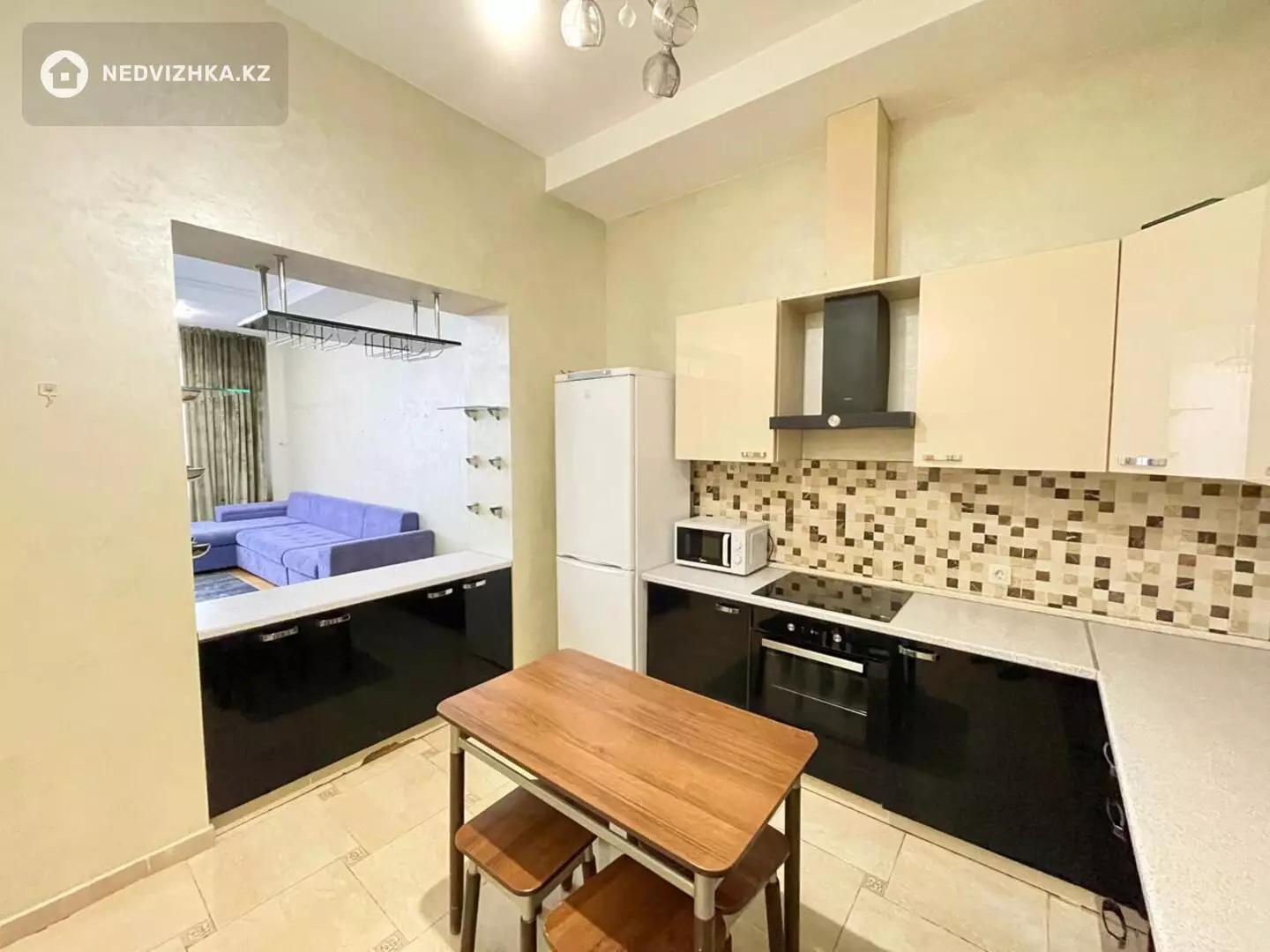 Двухкомнатная квартира, площадью 75квм. Кухня студия и спальня. В квартире 2 санузла. Потолки 3 метра.