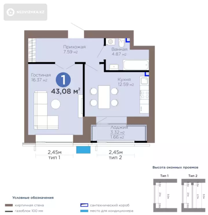 Формат 1-комнатной квартиры площадью 43,8 м² — хороший вариант и для жизни, и для инвестиций.
