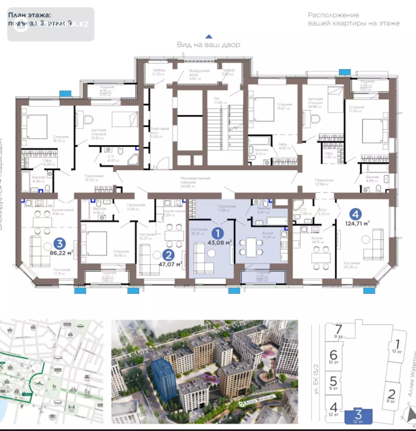 🏡 Инфраструктура: закрытая охраняемая территория, зоны отдыха, воркаут-площадки, рядом школы, ТРЦ «Хан Шатыр», бульвар GreenLine.