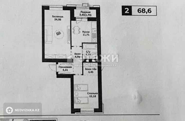 Красивая, просторная 2х комнатная квартира в ЖК Кеменгер, Бизнес класса, от застройщика Сенсата Групп.