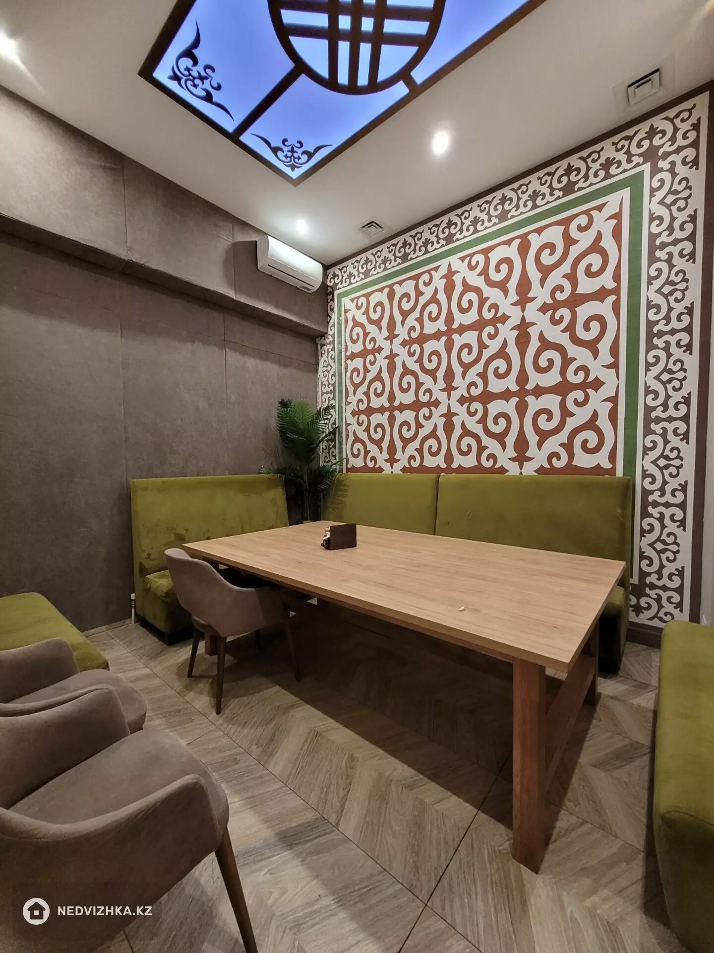 На первом этаже расположены: просторный общий зал, три вип-комнаты, кухня, бар, подсобные помещения.