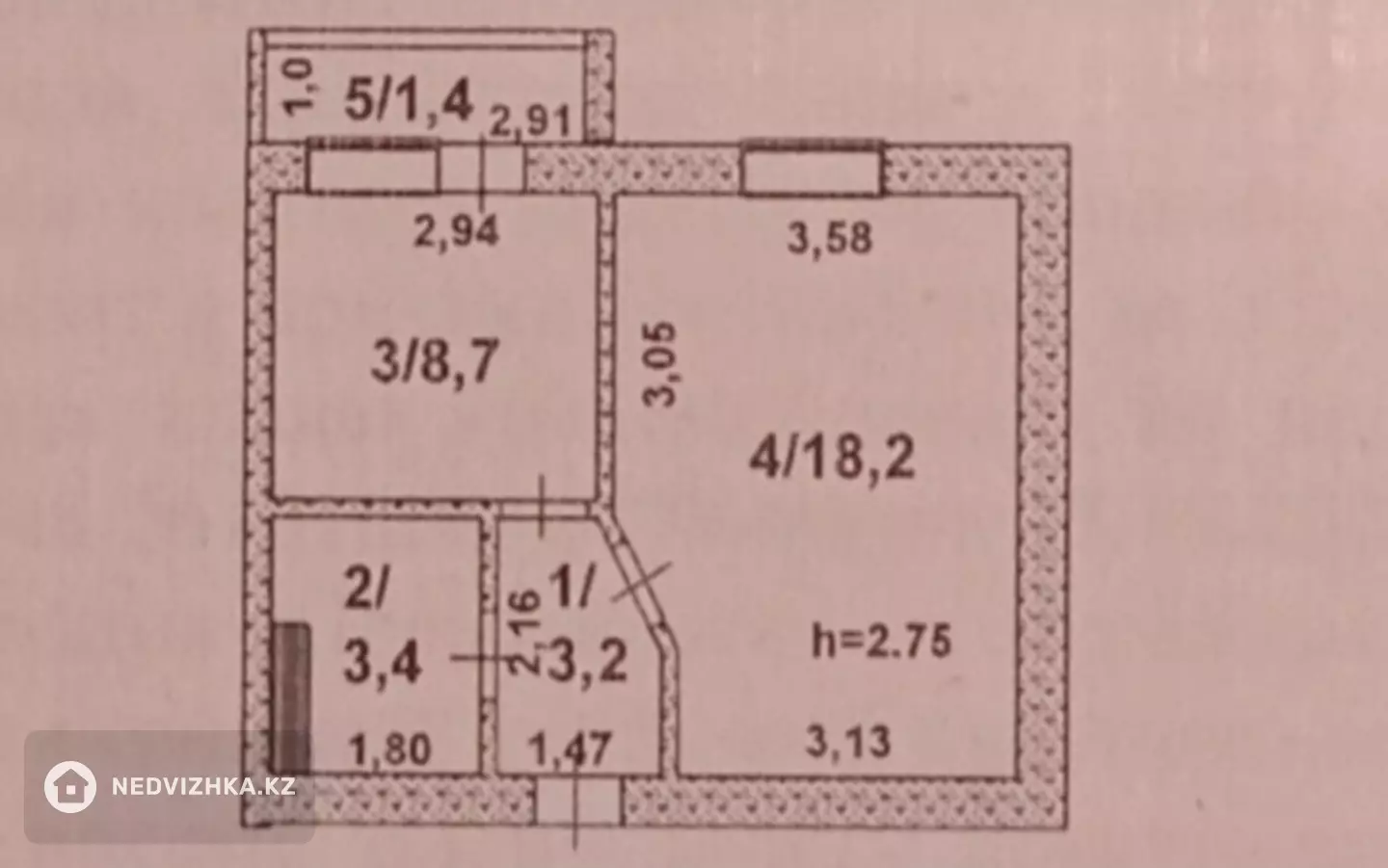 1-комнатная квартира, этаж 4 из 5, 35 м² в