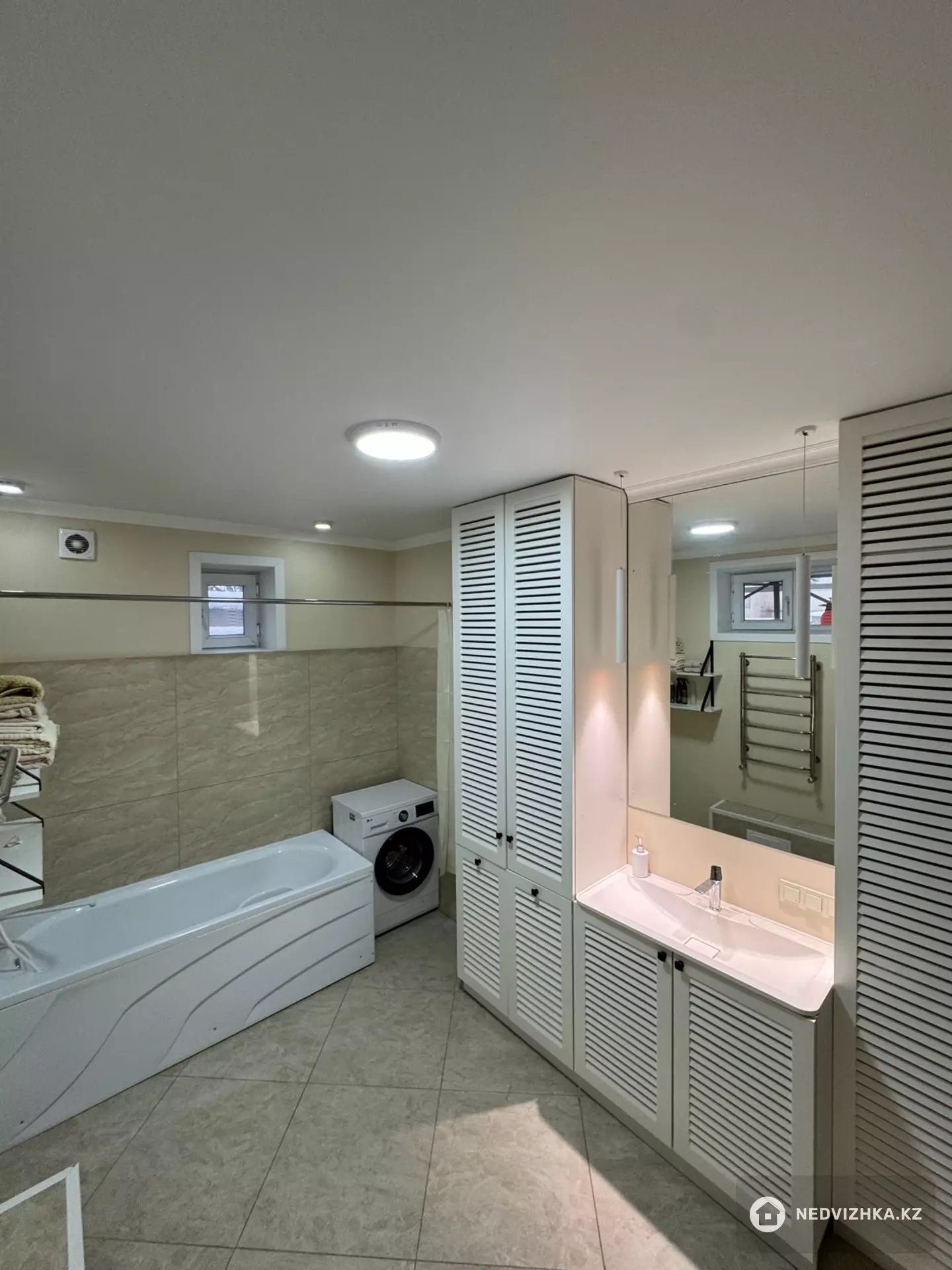 На первом этаже просторная кухня и большой зал, а также санузел с ванной, дополнительно установлен электр. теплый пол.