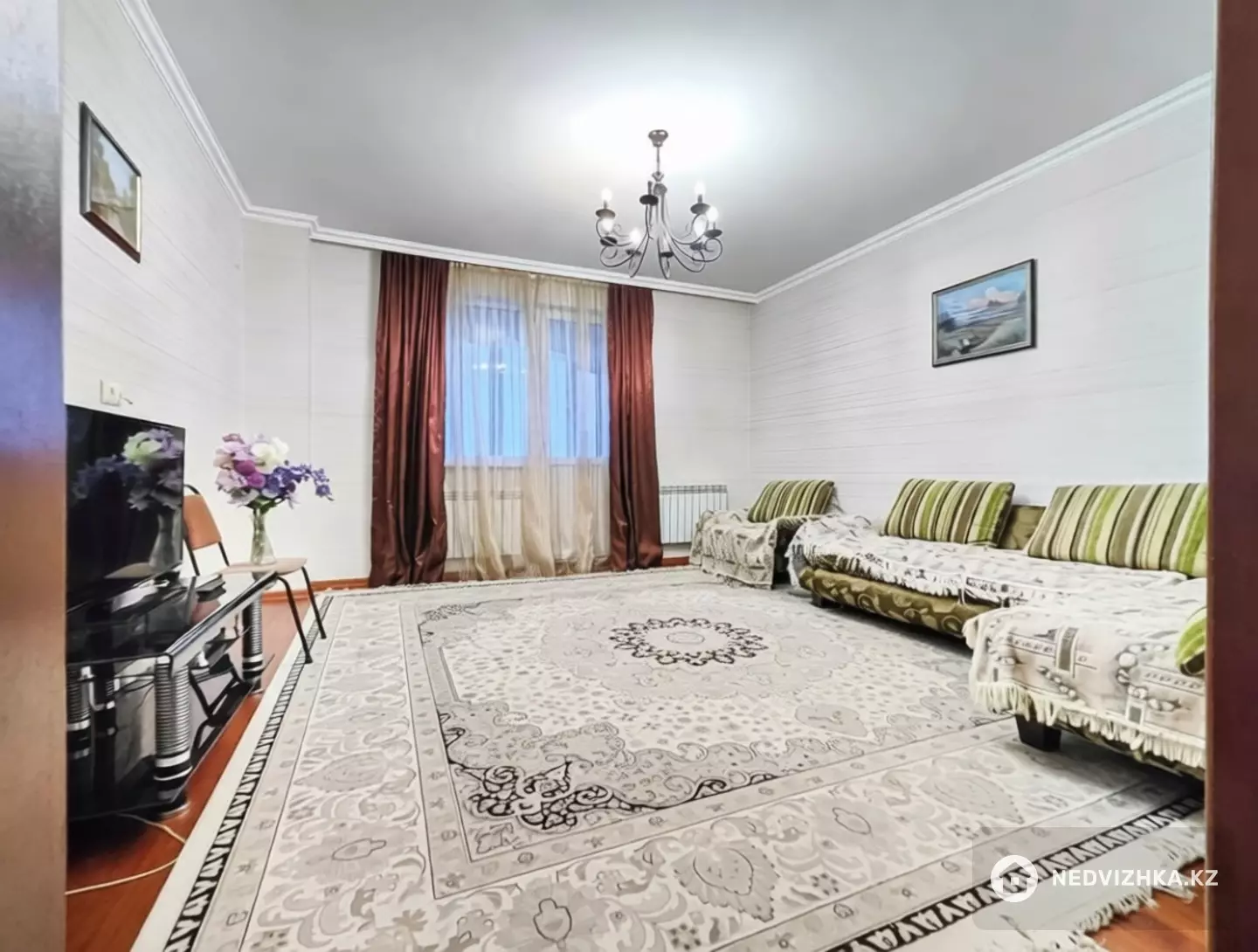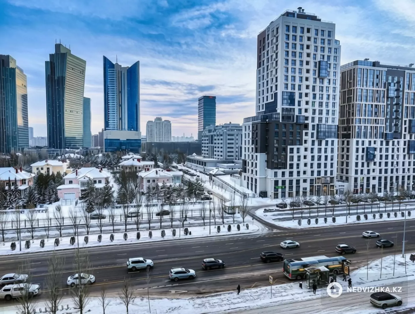 Площадь 85 м². 3-комнатная квартира с шикарным видом в ЖК "Лазурный квартал". В самом центре столицы, на улице Сарайшык 5.