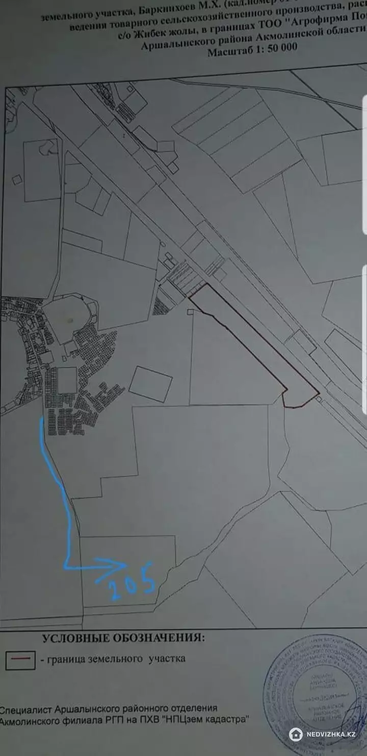 К продаже земельный участок, назначение КХ ,делимый в частной собственности, электричество имеется рядом искусственный водоем, площадь 205га участок ровный, ухоженный, подойдёт для молочной фермы, откорм площадки, строительство мясо комбината, земля пашня повышенная урожайность сельскохозяйственных культур находится по напровлению трассы Астана -Караганда рядом с посёлком Жалтырколь. частичный бартер на коммерческую так же жилую недвижимость в городе Астана, посредников просьба не беспокоить.все вопросы касательно данного участка , звоните