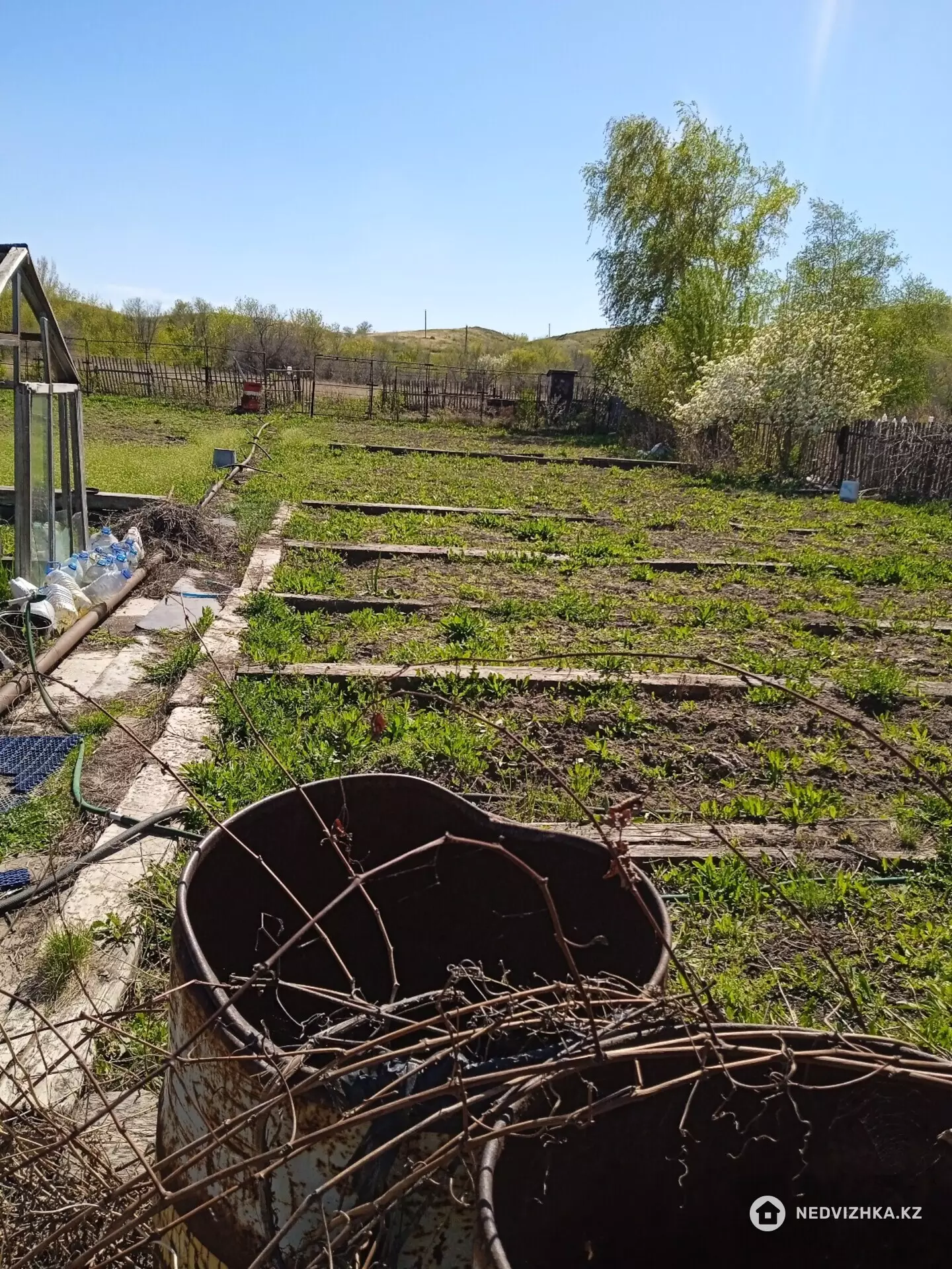 На участке расположено двухэтажное помещение с подготовленным местом для пристройки. Есть отдельная терасса,в доме 2 комнаты. Установлен металлический забор.