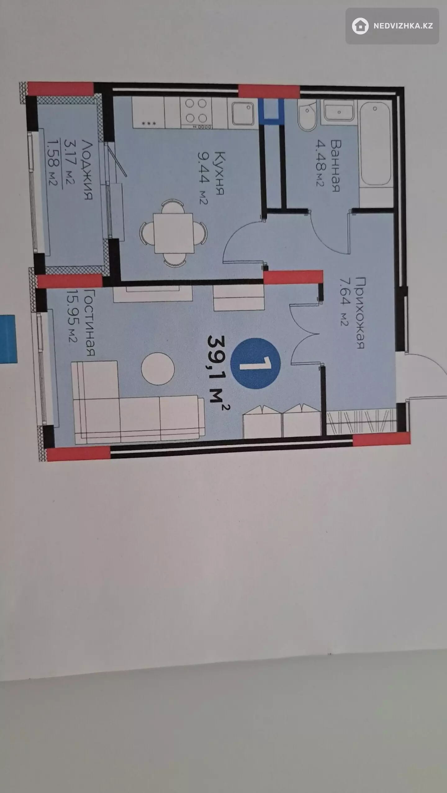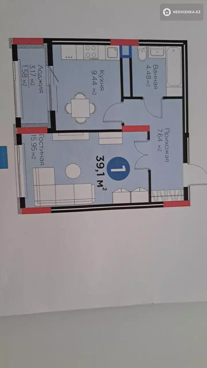 1-комнатная квартира, этаж 3 из 14, 39 м² в