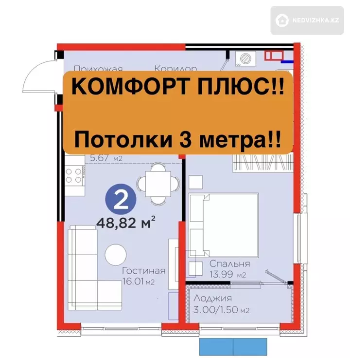 Это не просто комфорт-класс — здесь высокие потолки 3 метра, что создаёт ощущение простора и света.