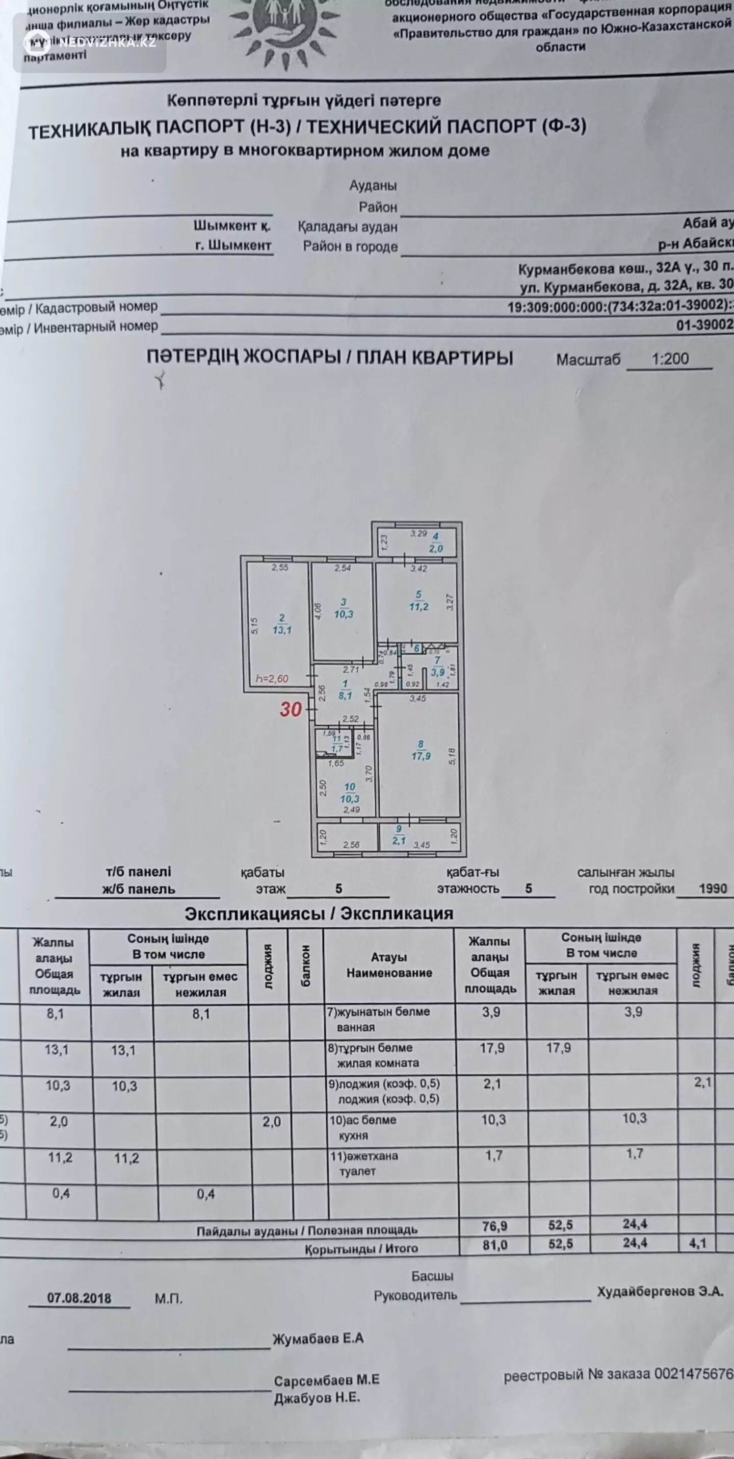 4-комнатная квартира, этаж 5 из 5, 90 м² в Шымкент, Абайский р-н, мкр Катынкопыр, Мансар 32а - Курмамбекова