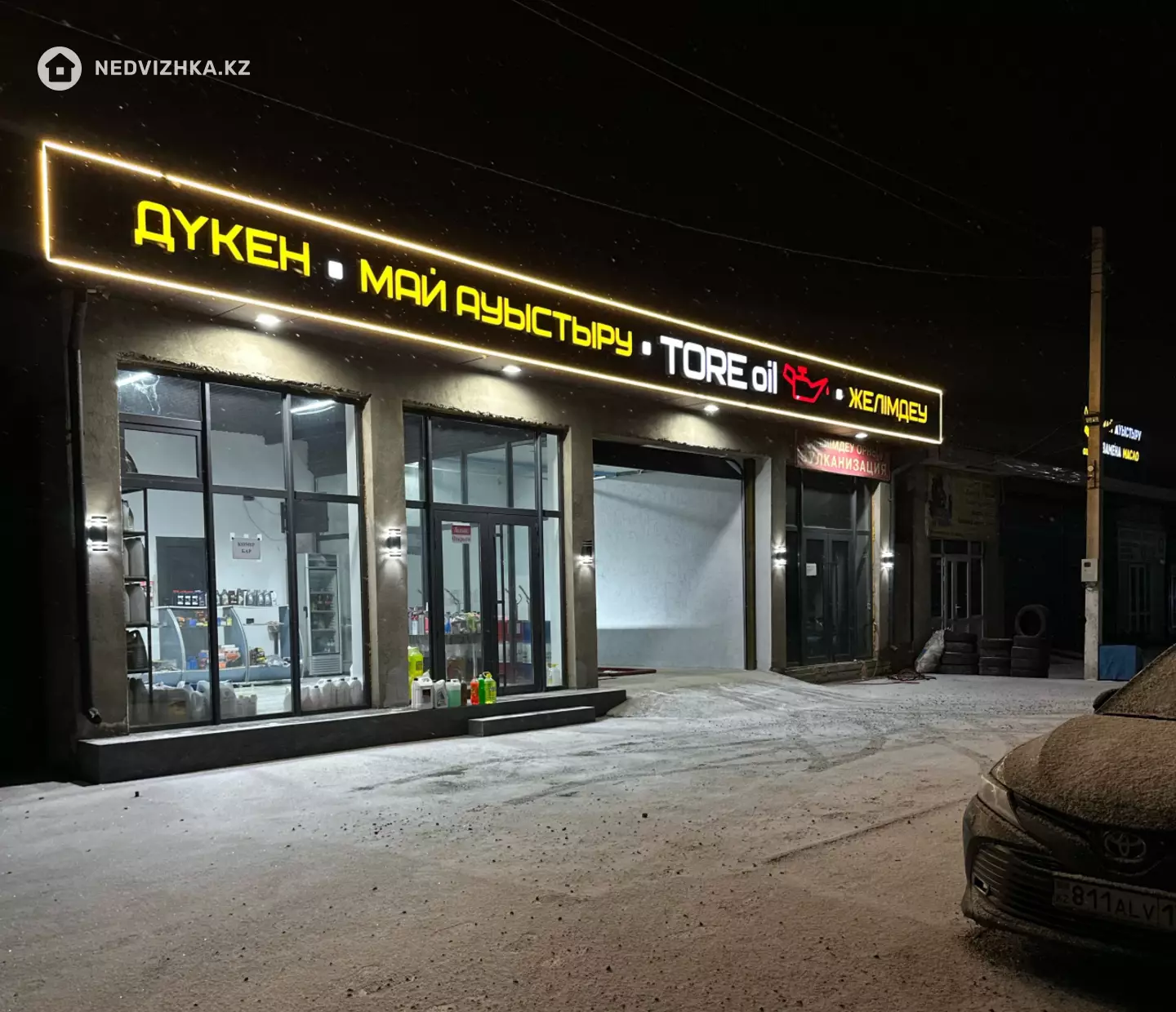 Адам көп өтетін, үлкен трассаның бойындағы автозаттар сататын дүкен, май ауыстыру боксы, вулканизациясы бар